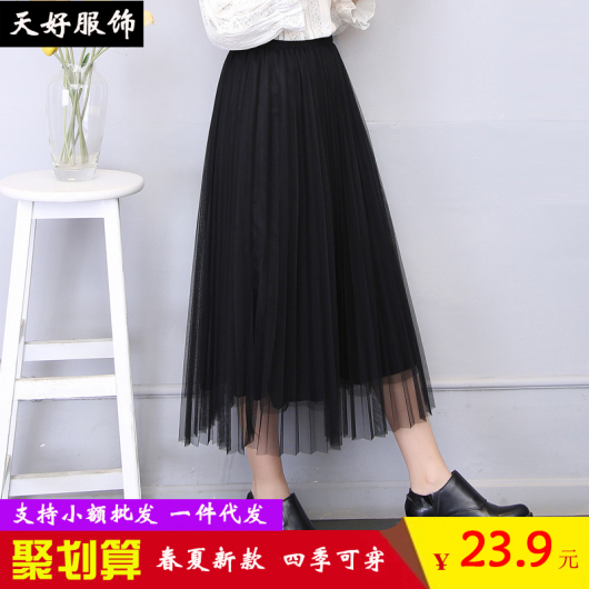 The Korean version goes with a full-length skirt in a plain pleated mesh skirt