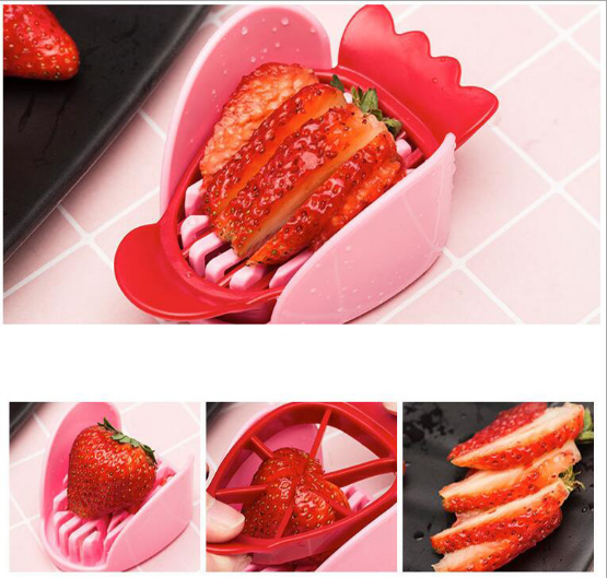 Creative Multifunctional Fruit Slicer Fruit-Cuttng Device Four-Piece Three-in-One Plastic Strawberry Slicer 中文版