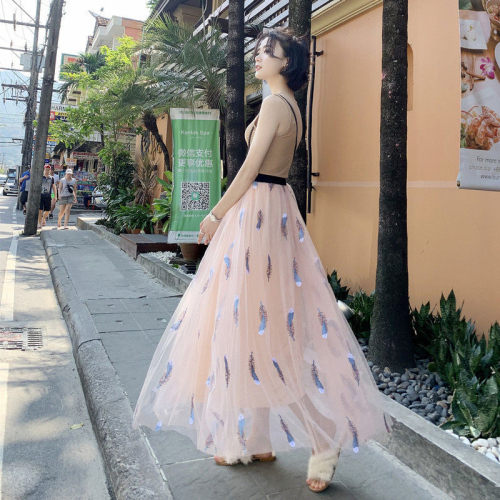 Spring/summer embroidered mesh skirt with 3 layers of high-waisted ins long fairy skirt in the super fire