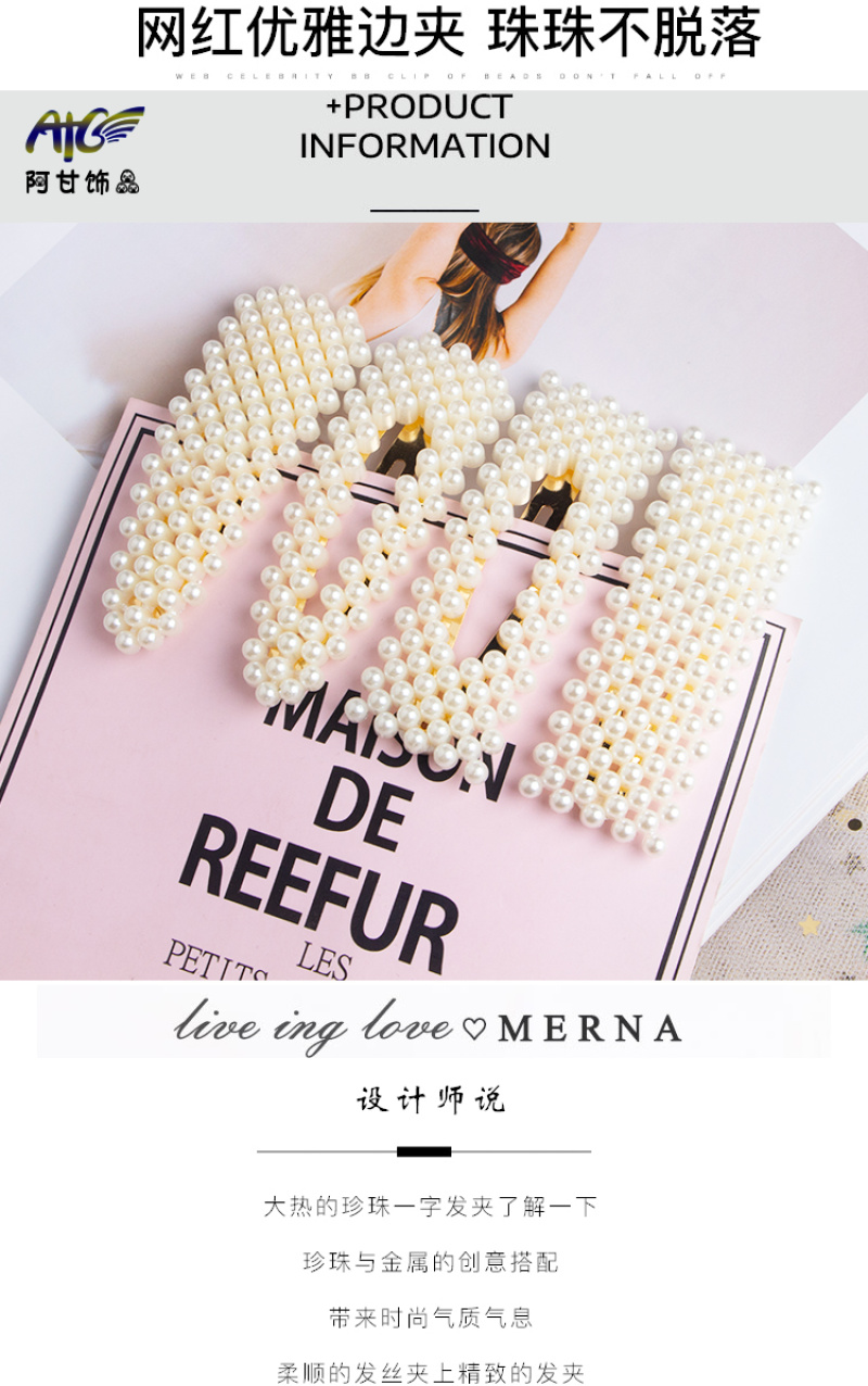 ins pearl barrettes high-profile figure hairpin girl duckbill clip children south korea headdress internet celebrity bar clip side clip hair accessories 中文版