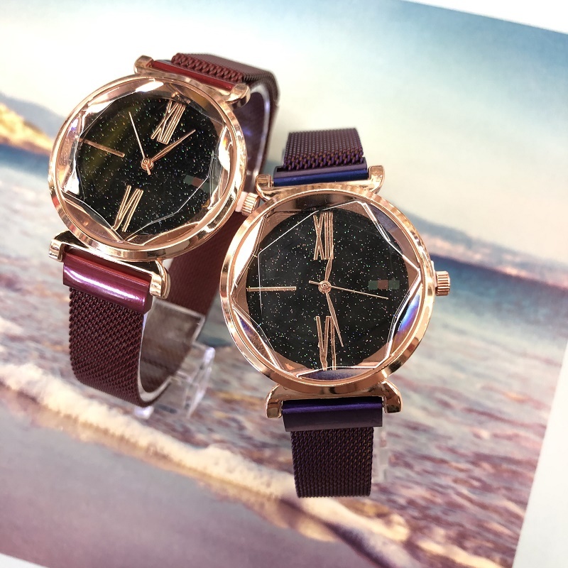 New hot style magnet buckle creative simple crystal face star watch 中文版