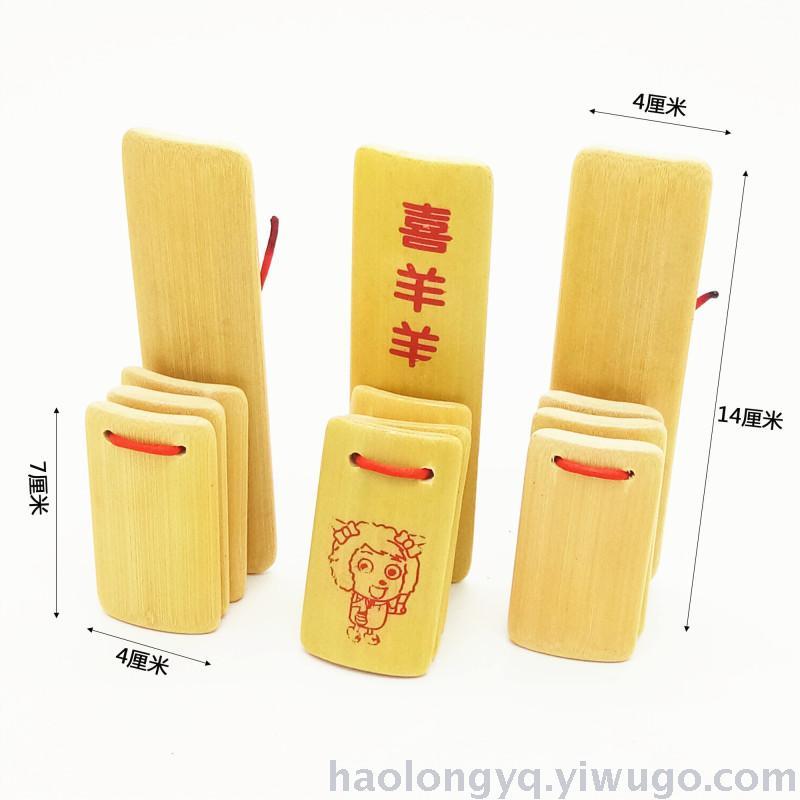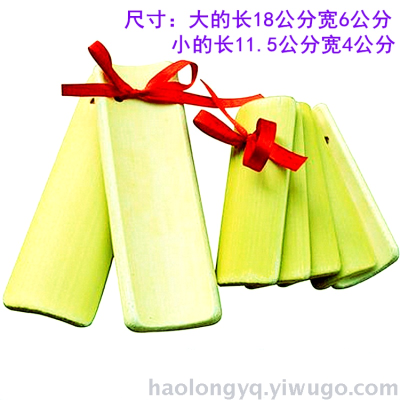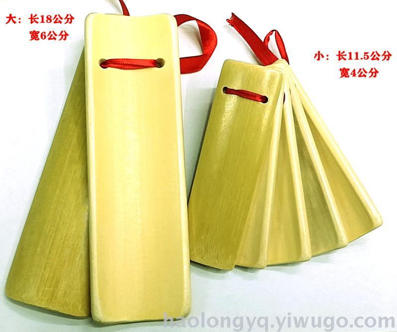 3、Horse's Hoof Beat: This rhythm pattern is reminiscent of the sound of a horse's hoof walking, producing two sounds of "gu" and "wa". When playing, the right hand holds the bottom of the large board, with the thumb across the top of the hole-punching area, and the other four fingers bent along the side of the bottom of the board; the palm is raised, covering the valley area (concave side) of the bottom board to form a "resonance box". By striking the front board with the bottom board, a dull sound of "gu" is produced. Then, without changing the palm movement, the thumb and forefinger hold the board in place, the other three fingers are spread; the wrist rotates, striking the front board with the bottom board to produce a sound of "wa". It can also be played by simply opening and closing the thumb to produce the "gu" and "wa" sounds of a horse's hoof.