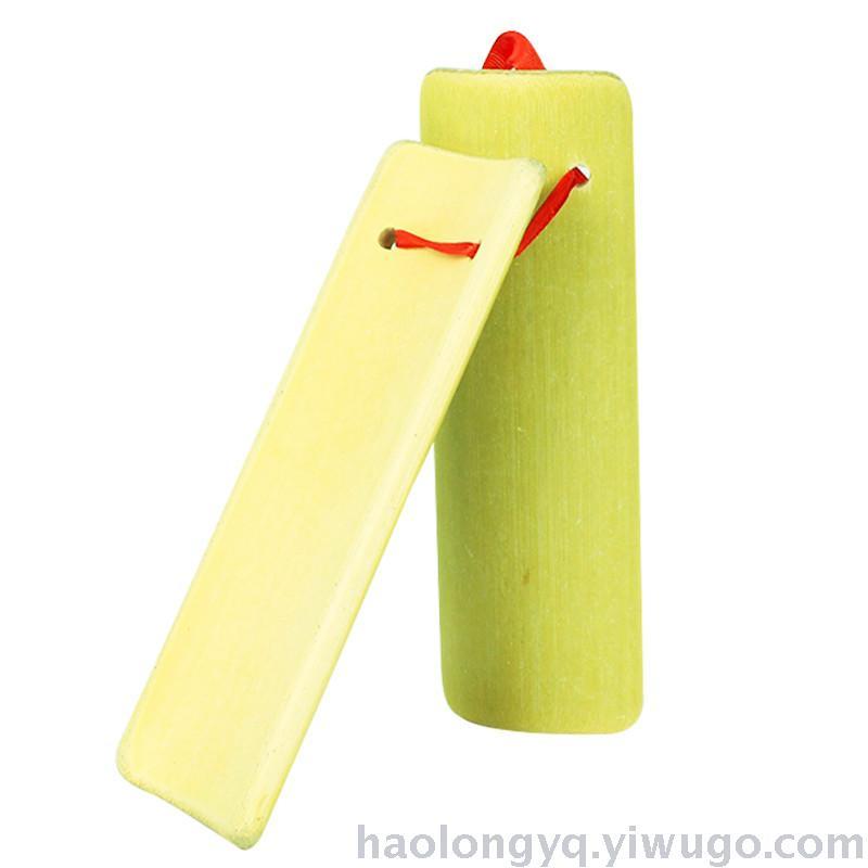 2、"台" sound: Insert the thumb into the rope attachment, gently clamp the bottom board with the palm, and loosen the other four fingers. Coordinate the movement of the thumb, rotate the wrist, and strike the bottom board at the lower end of the front board to produce a "tai" sound, similar to the sound of a small gong in a theatrical instrument.