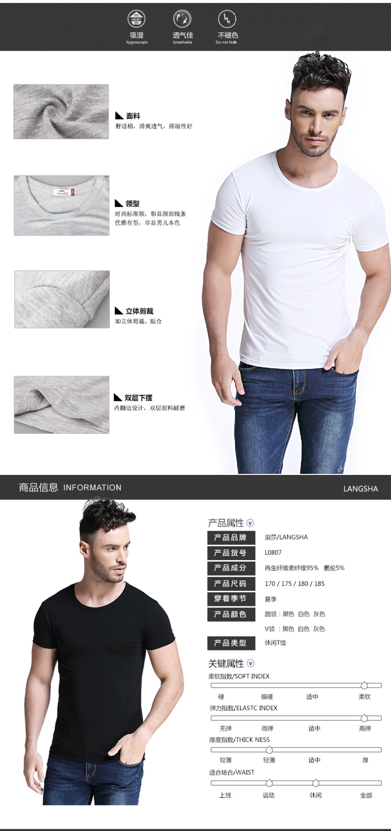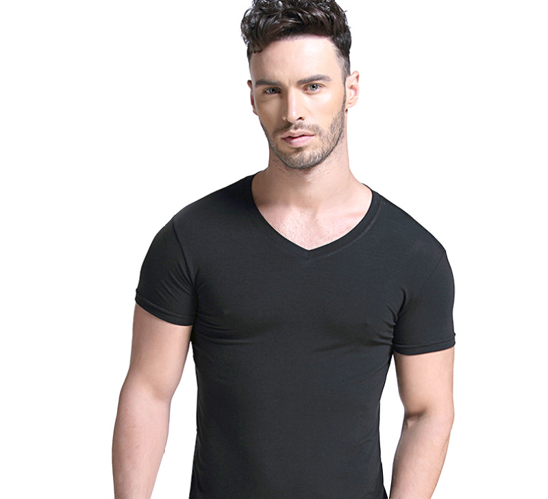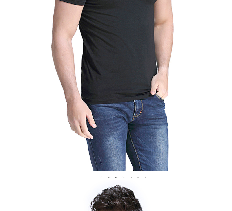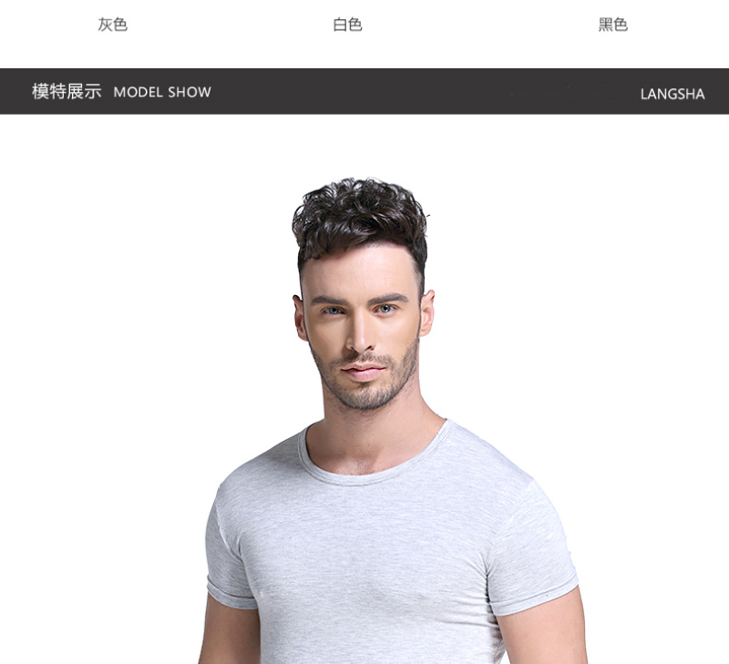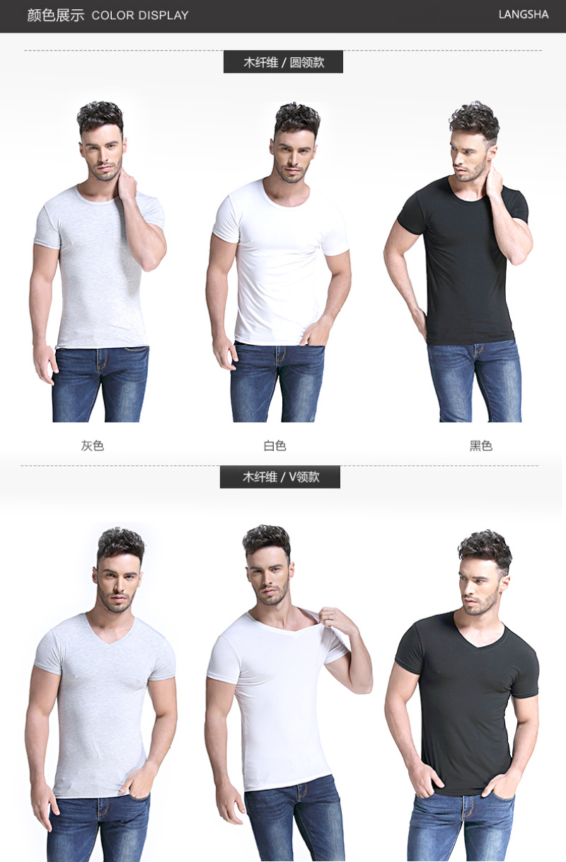 Langsha Short Sleeve T-shirt round Neck Summer Slim Fit Modal Thin Clothes Base Shirt round Neck Half Sleeve Tight Men 中文版