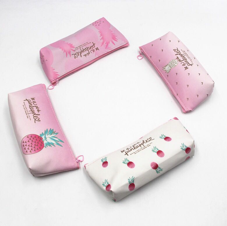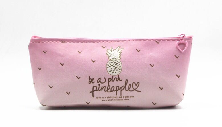 Stationery pencil bag New small fresh pink pineapple PU pen girl heart student multi-functional storage bag stationery pencil bag with large capacity 中文版