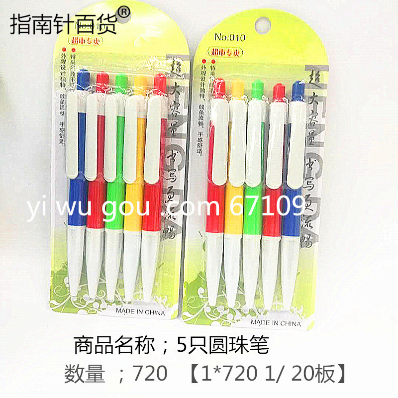 factory direct press simple ballpoint pen 5 ballpoint pen set plate 2 yuan store daily necessities supply 中文版