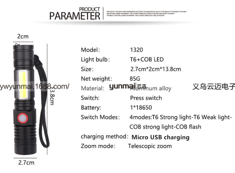 [gear position] : 4: T6 strong light -T6 weak light -COB strong light -COB flash