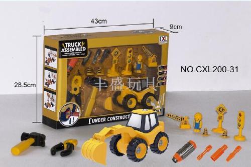 disassembly and assembly engineering car with road signs + tools