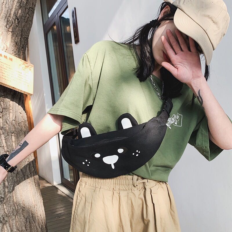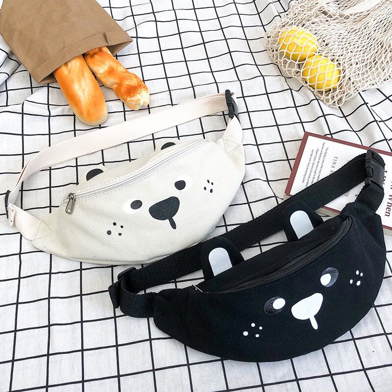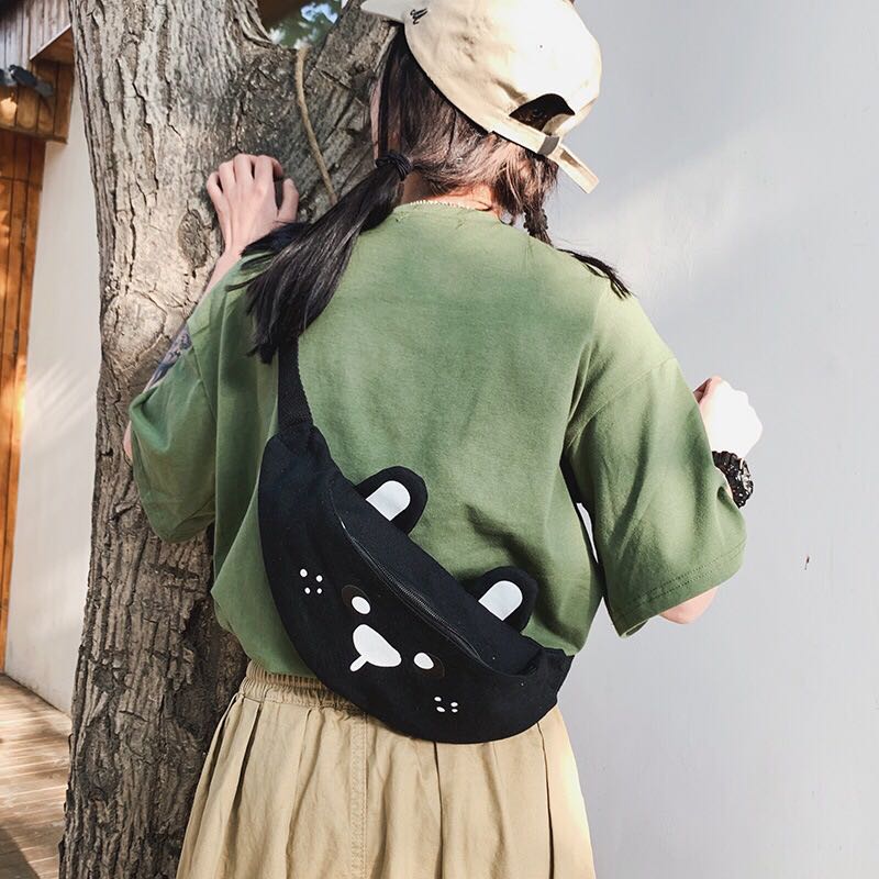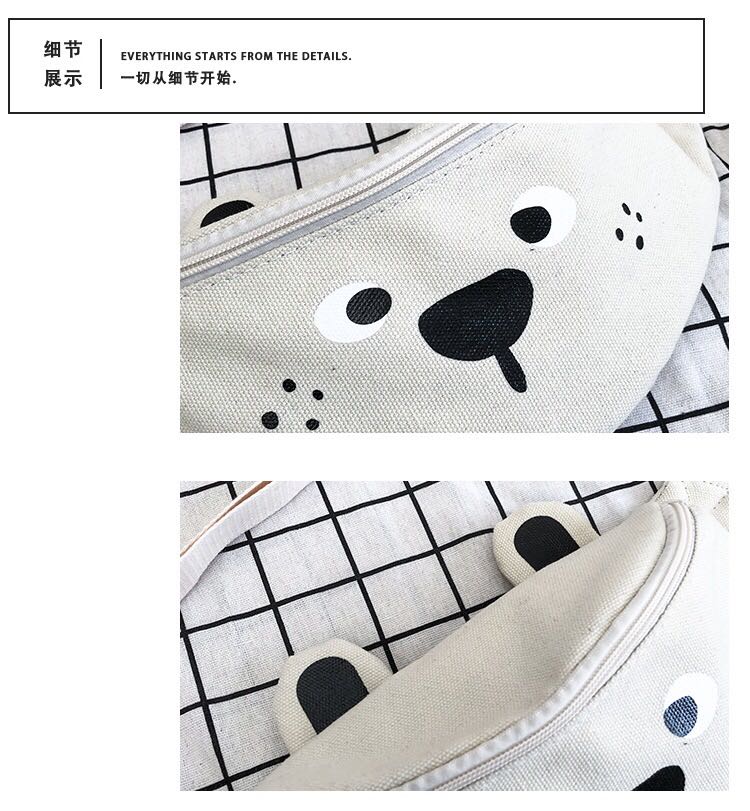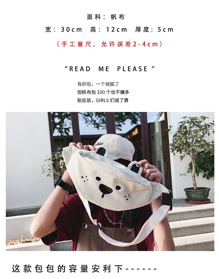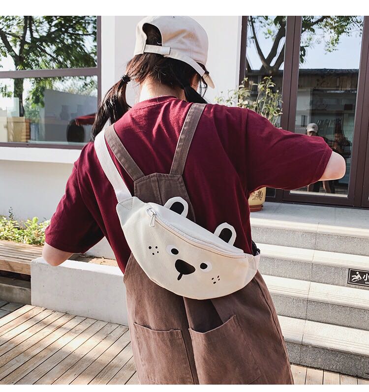 Korean version of ins children's fun cartoon print canvas bag Japanese girl funny girl funny cute bear cross-body 中文版