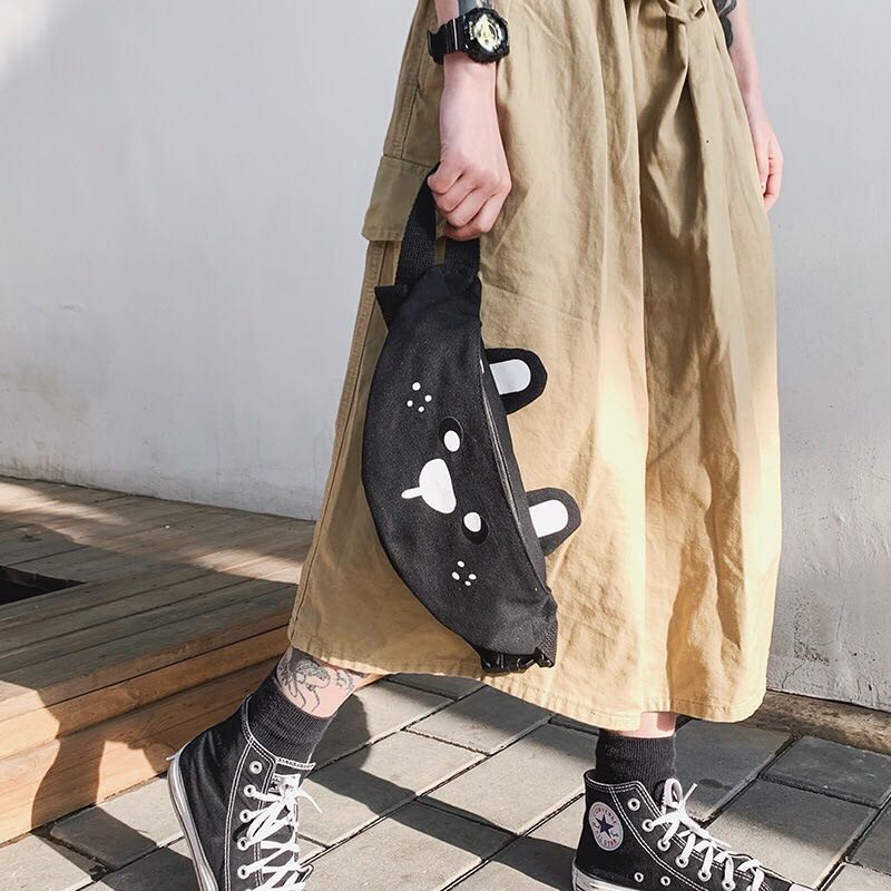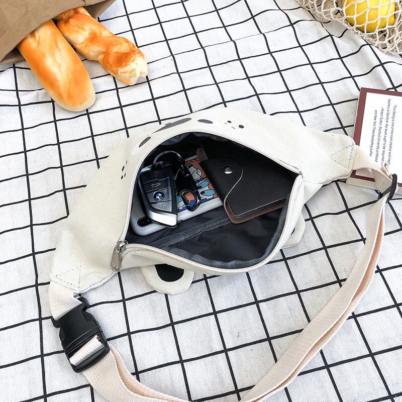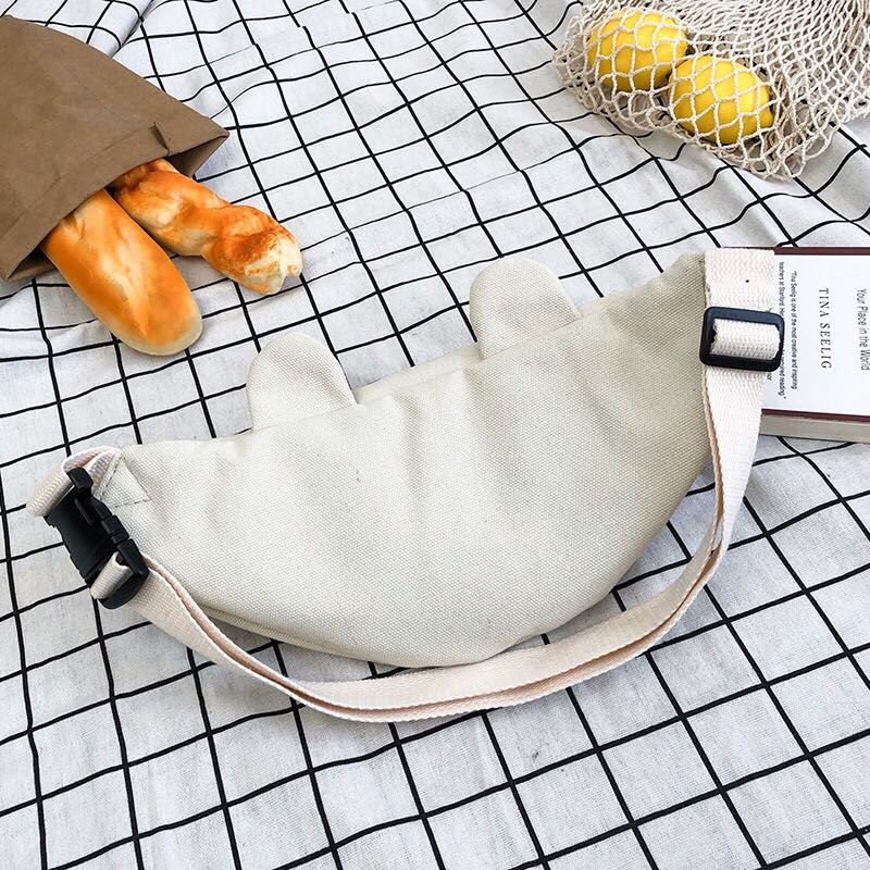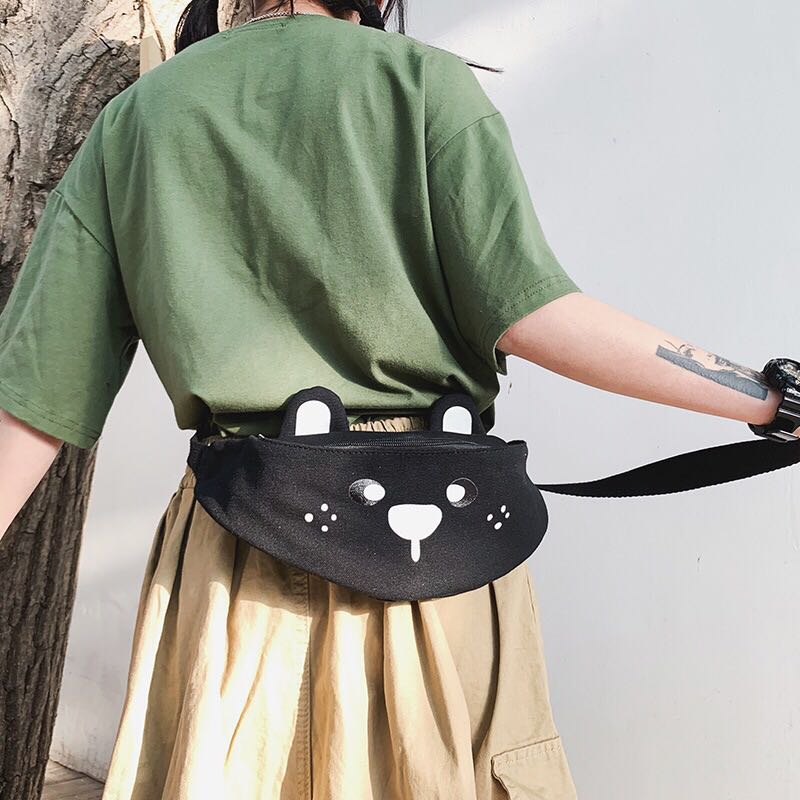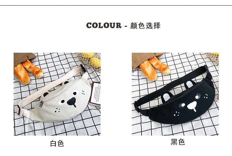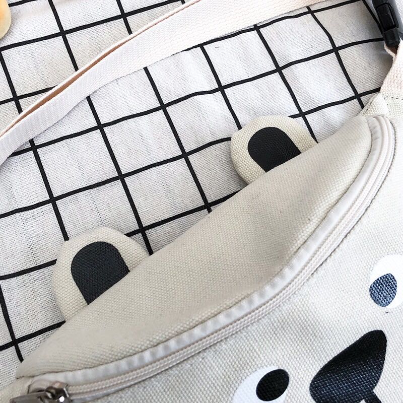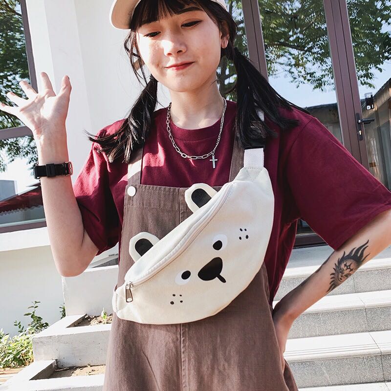 Korean version of ins children's fun cartoon print canvas bag Japanese girl funny girl funny cute bear cross-body 中文版