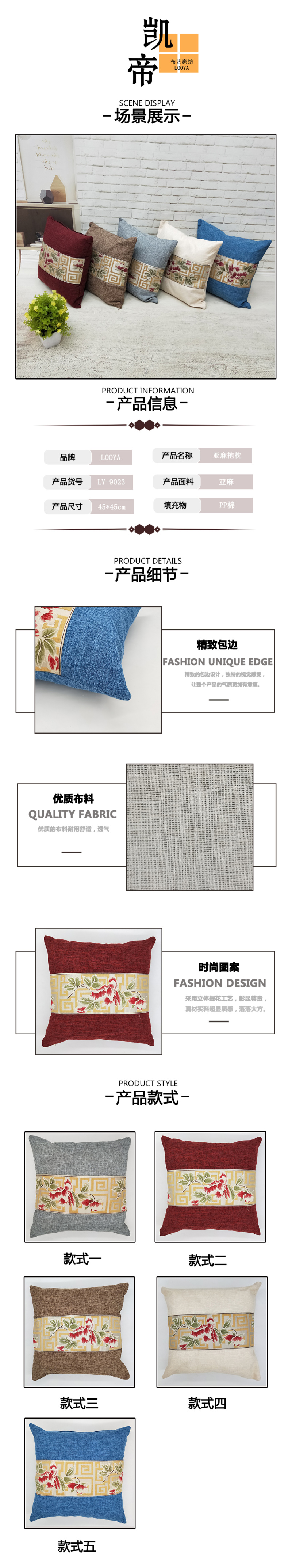 About Product:Brand: Lou jacobs product category: cushion cover/hold pillow case style: European style article number: LY - 9023 coat material: linen filling material: PP cotton printing LOGO: Can be customized processing, is been to support a undertakes to: support material: flax main downstream platform: wish, amazon, speed sell tong, independent stand, LAZADA, ebay color: A style, design 2, the design is three, four styles, style five size: 45 * 45 cm (do not include the pillow core) major sales areas: Southeast Asia, northeast Asia, Europe, Middle East, Africa, North America, South America may authorize its own brand: whether cross-border supply of goods: is