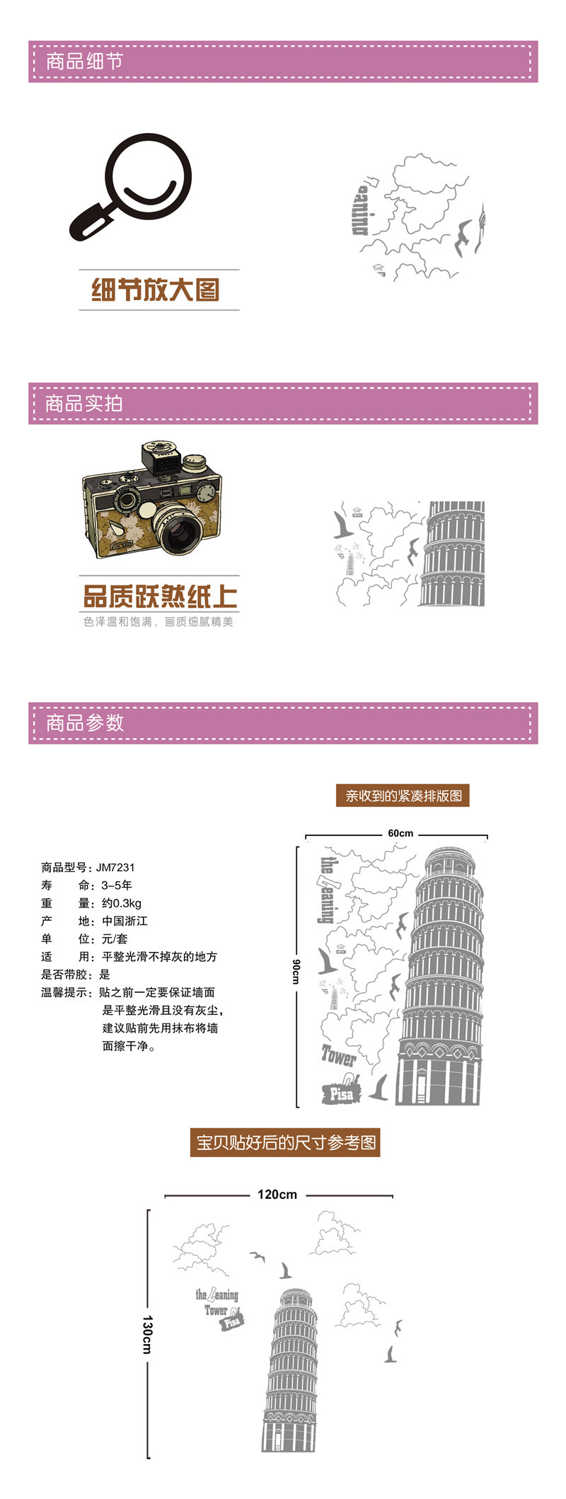 New Leaning Tower Of Pisa Italy Wall Stickers TV Wall Study Wall Stickers Bathroom Wall Stickers Scenic Spots