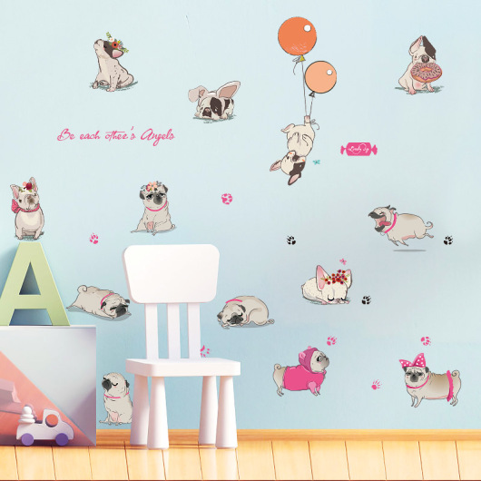 Adorable Pet Shar Pei Removable Free Stickers Children's Room Living Room and Kitchen Refrigerator Decorative Wall Stickers
