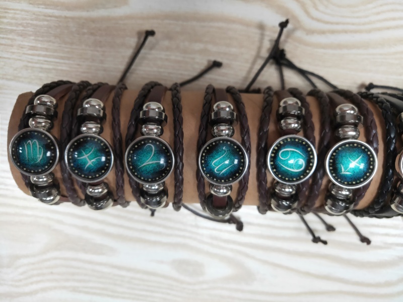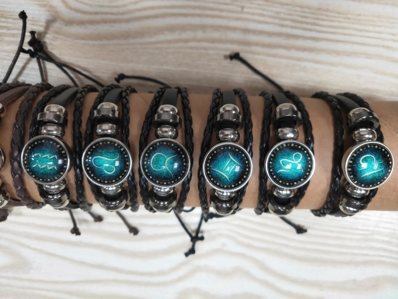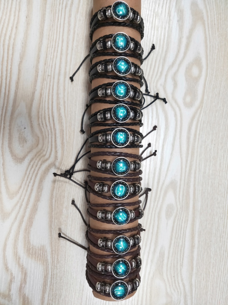 european and american hot alloy cross-border supply 12 twelve constellation multi-layer woven starry sky retro punk cattle leather bracelet 中文版