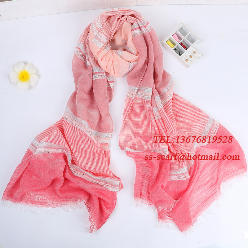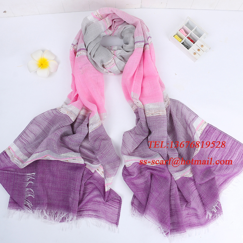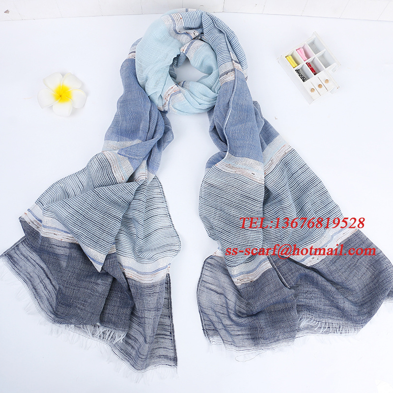 Cotton and Linen Striped Scarves, Thin and Light Silk Scarves, Casual Neck Warmers, Fashionable Gold and Silver Silk, Versatile Korean and Japanese Style, European and American