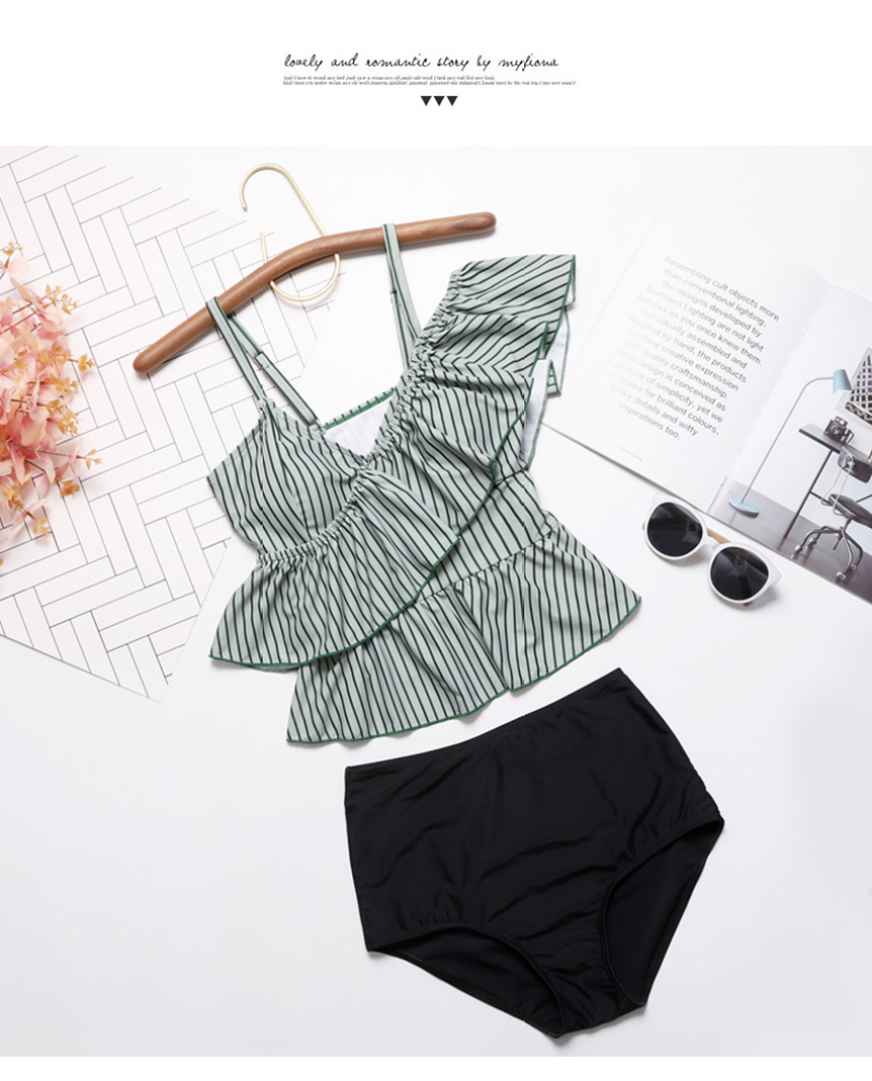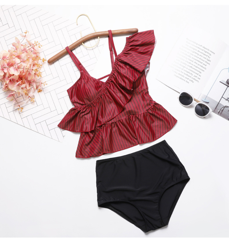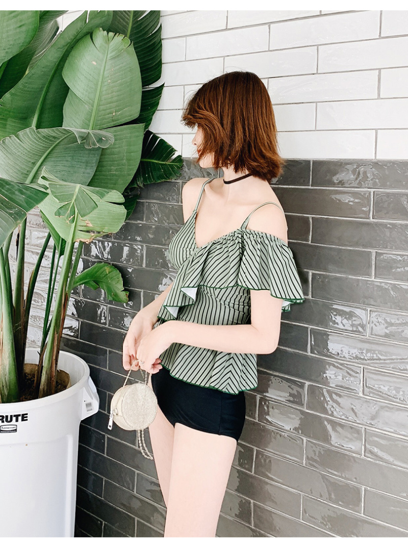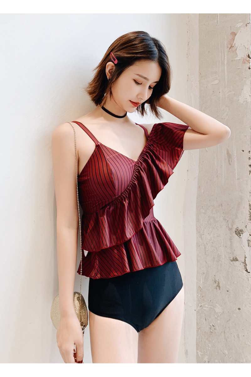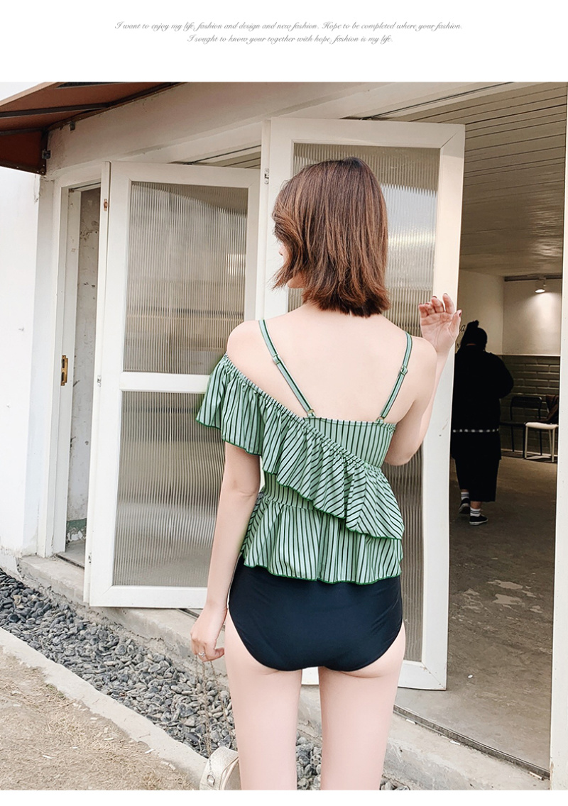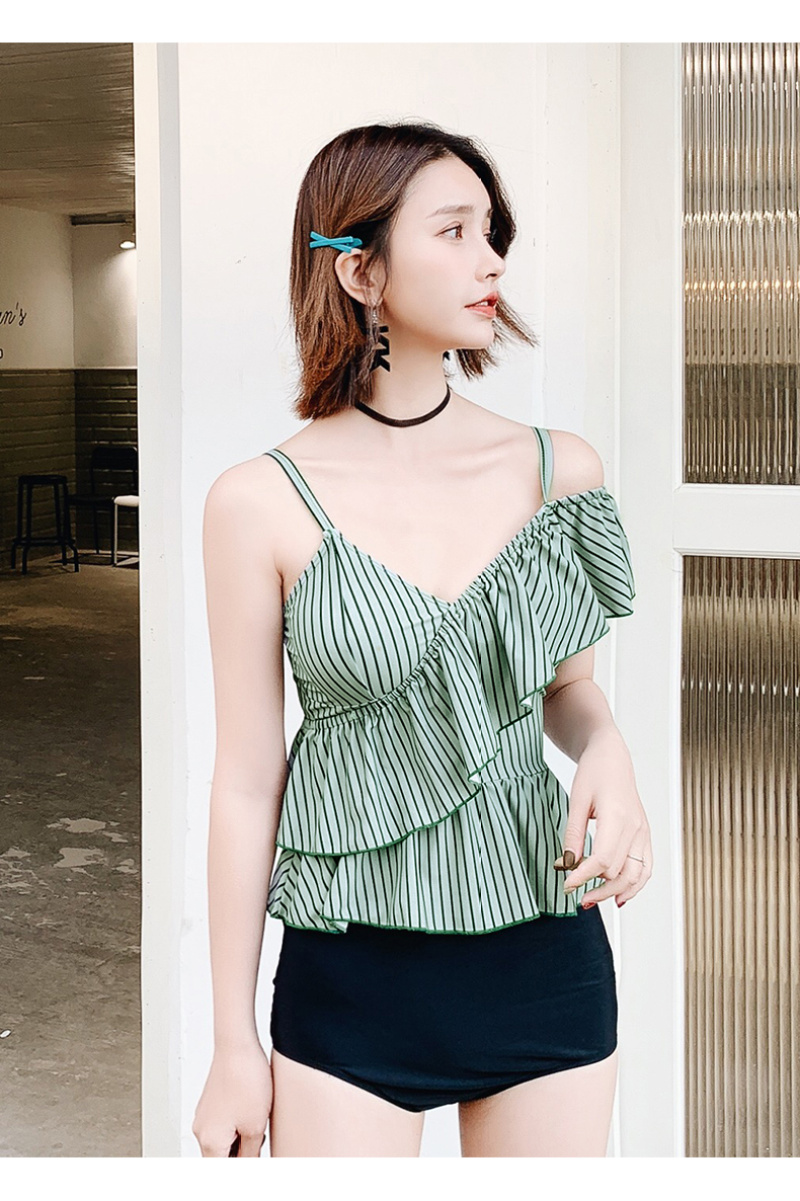 korean style sexy one-shoulder flounced split bikini sexy strap slim fit slimming beach hot spring swimsuit 中文版
