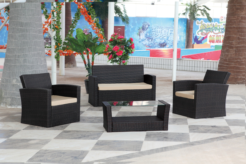 Outdoor Cane Sofa Combination Four-Piece Garden Balcony Rattan Occasional Table and Chair Sofa