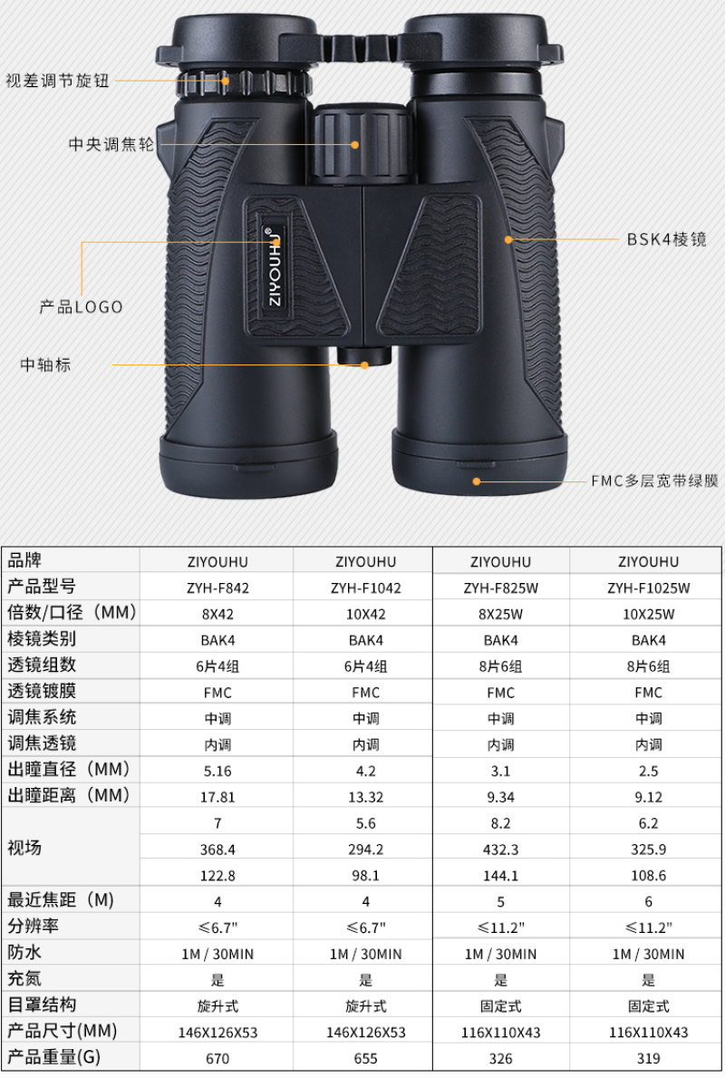 About Product:ZIYOUHU binoculars high definition high light level night vision waterproof professional adult portable outdoor hunting and bird watching