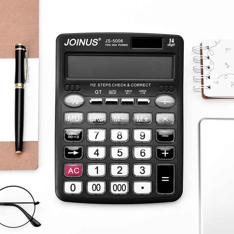 About Product:Manufacturers direct js-5006 calculator with review 14 large screen display crystal large key dual power supply