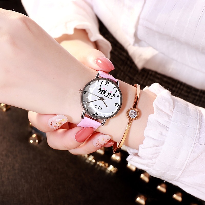 Personality trend lady cat student fashion belt watch 中文版