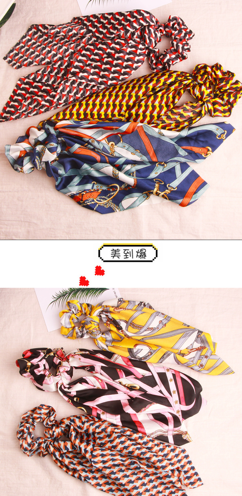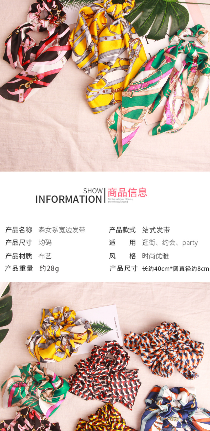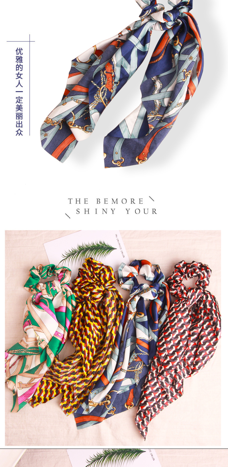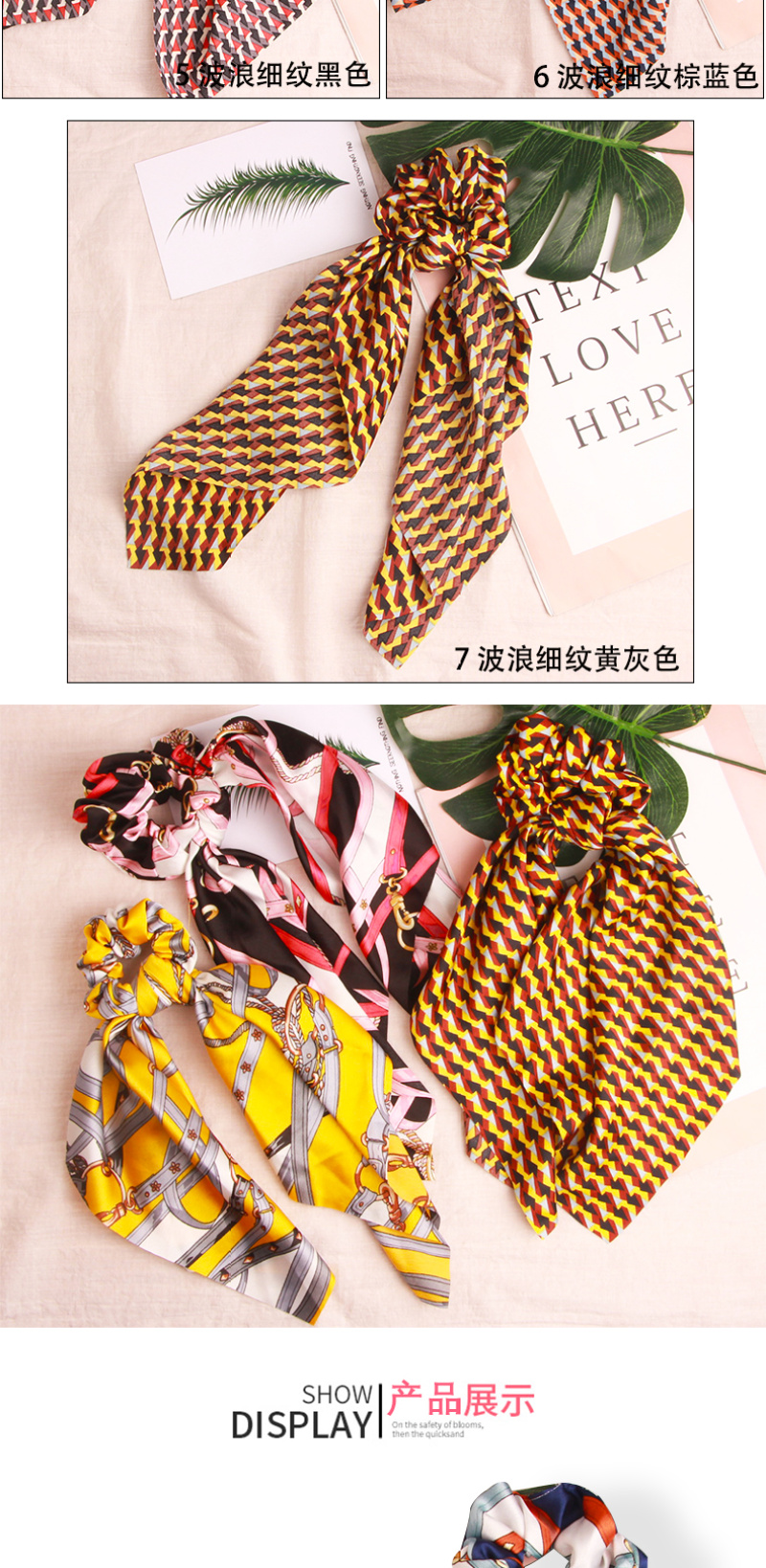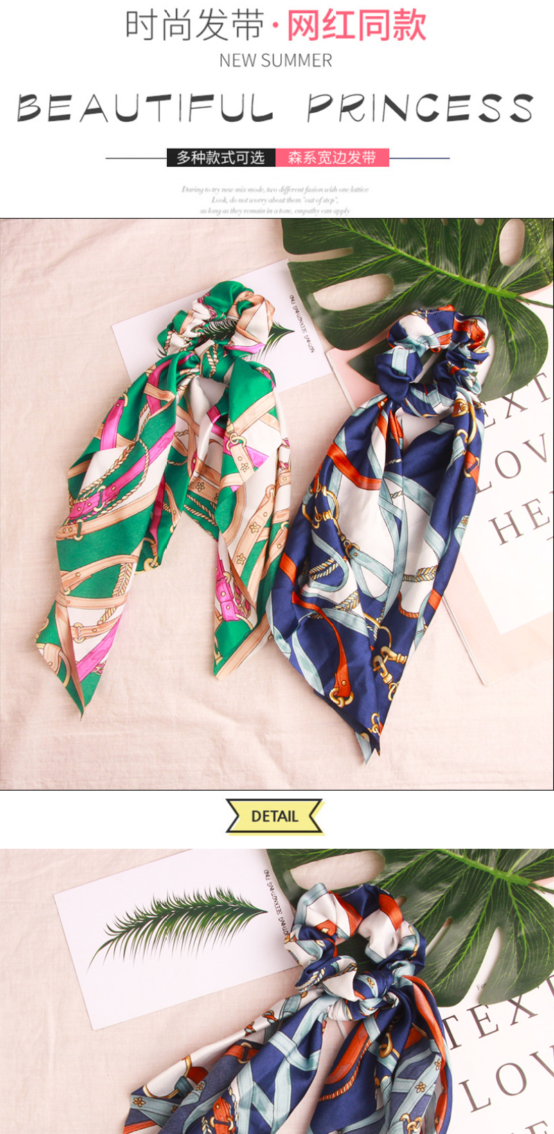 European and American Exotic Fairy Style Chiffon Leaf Printing Zipper Ribbon Bowknot Ponytail Hair String Released Circle Hair Accessories