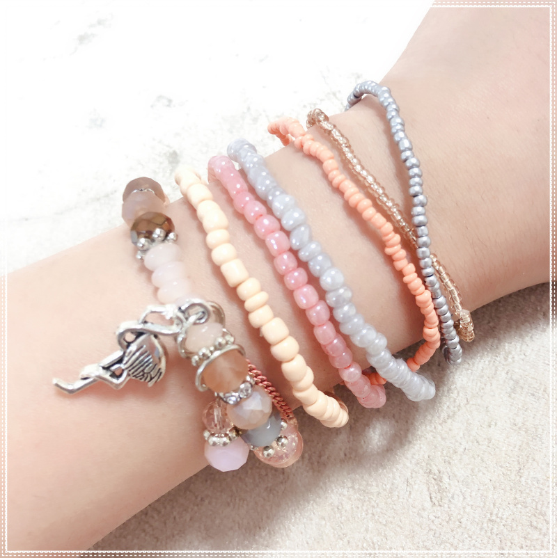 Rice pearl alloy beaded bracelet set