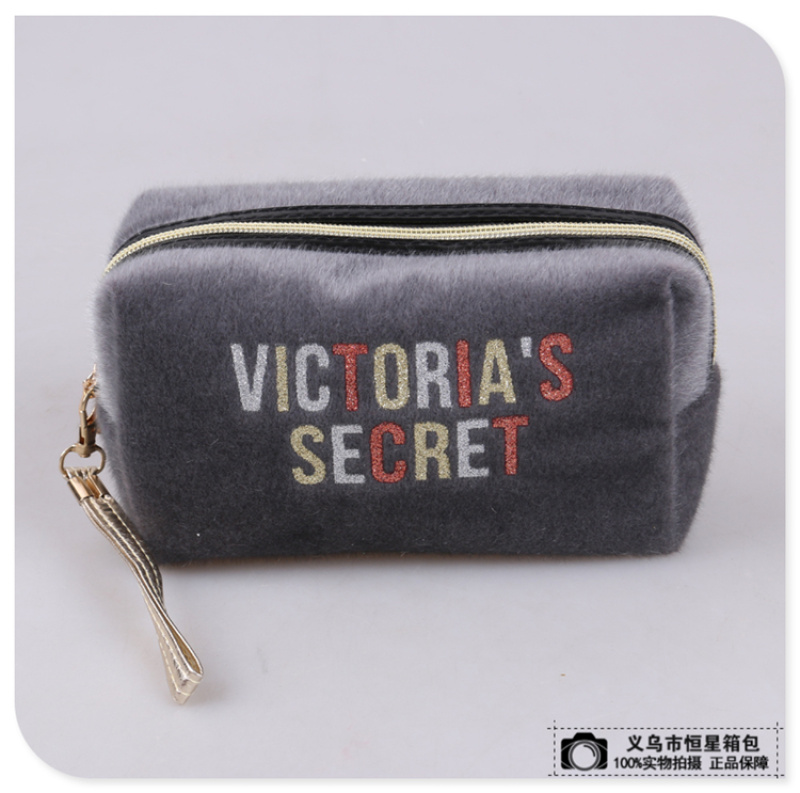 Product Name: Fuzzy exterior design with fashion sequins letters, portable makeup bag in European and American popular style, hand-held makeup bag