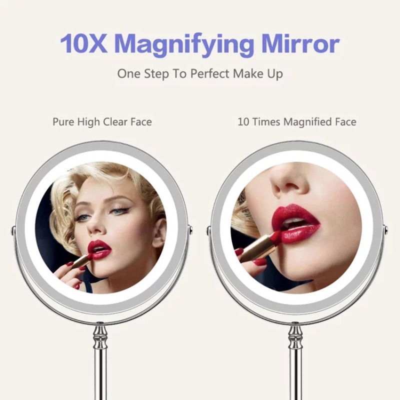 1. Double Side with 1x & 10x Magnification - The Amazing 10x Magnification Side is Ideal for Applying Make-Up and Other Beauty Treatments that Require More Precision Extra Precision, Such As Applying Contact Lenses and Eyebrow Tweezing, the Non-Magnified Side is Perfect for Doing Your Hair and Grooming.