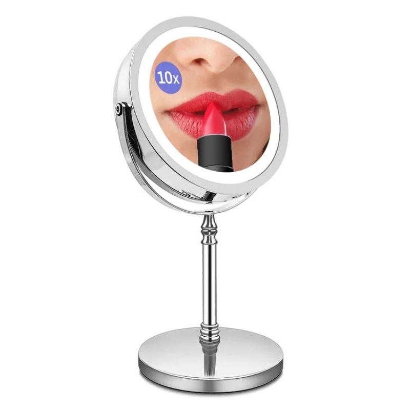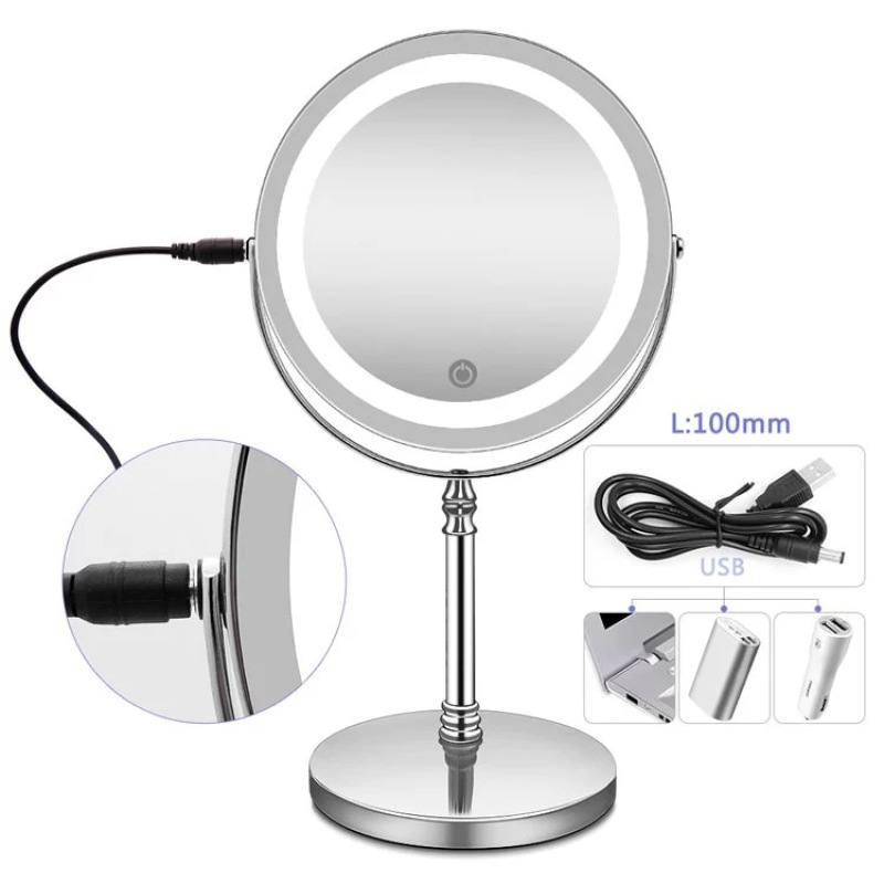 Double sides 10x magnification rechargeable LED makeup mirror with touch switch