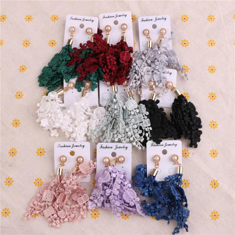 korean tassel earrings lace flower rhinestone pearl long earrings earrings earrings