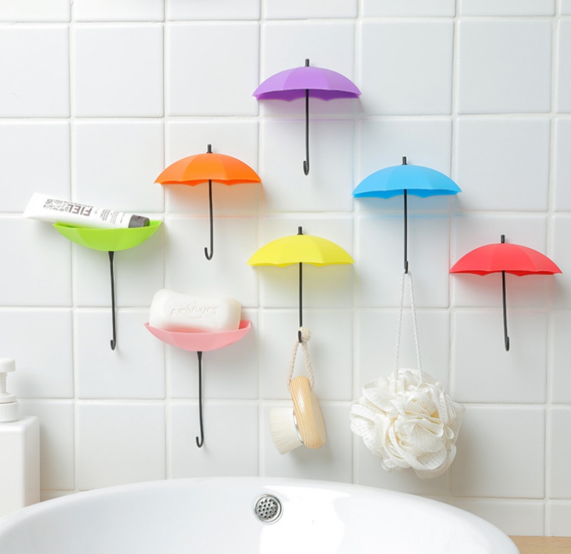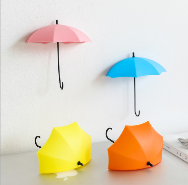 creative umbrella sticky hook seamless nail-free cute small sticky hook behind-the-door viscose hook wall hanging hook 3 pack
