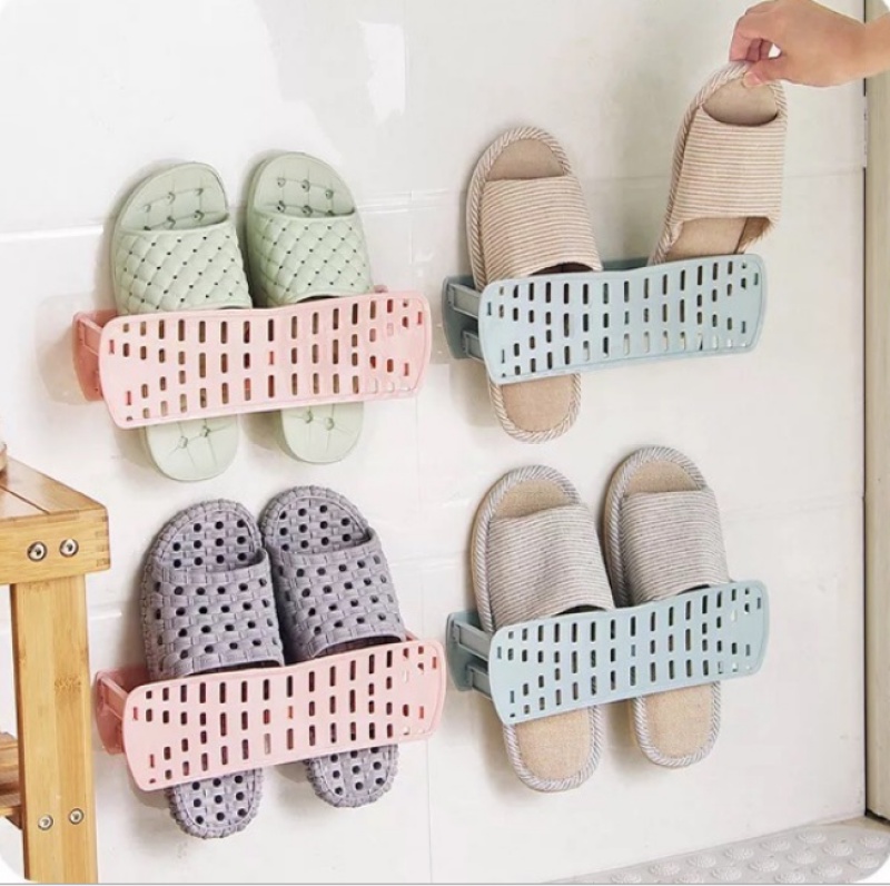 foldable wall-mounted paste shoe rack home simple shoes storage rack bathroom wall mountable slippers shelf