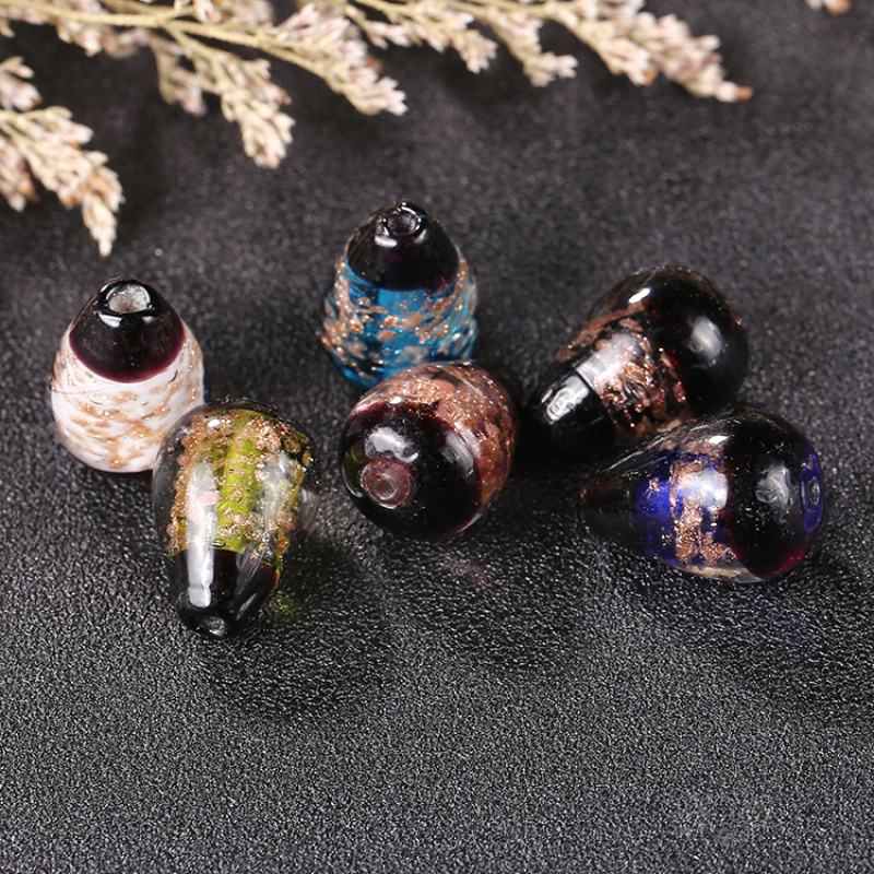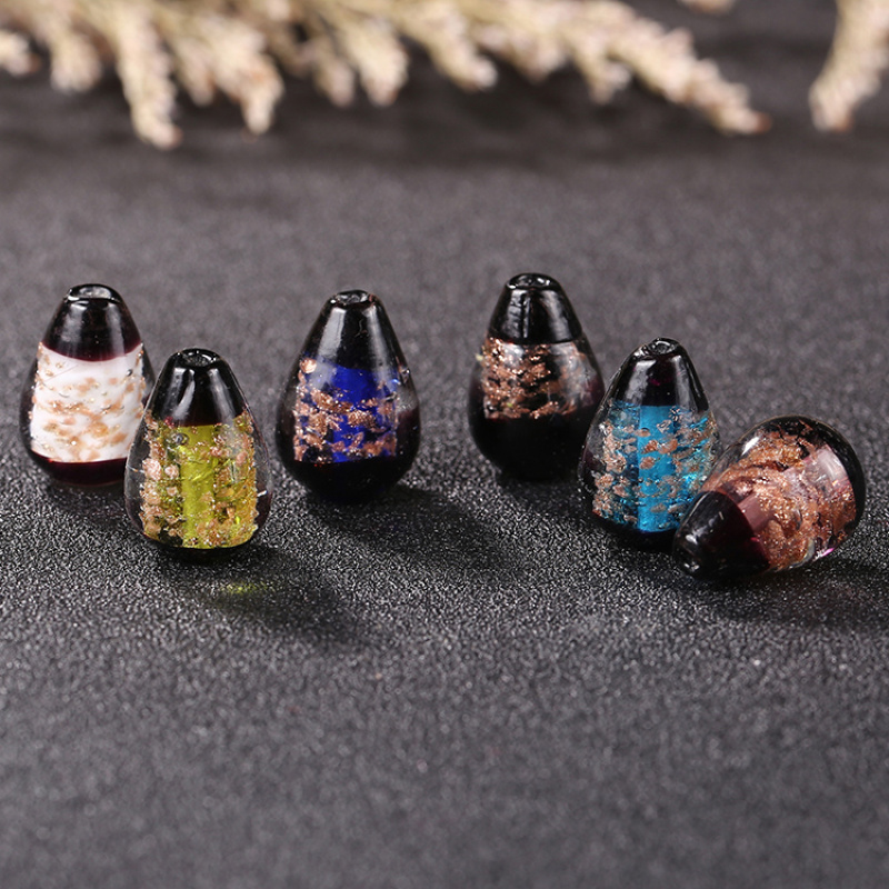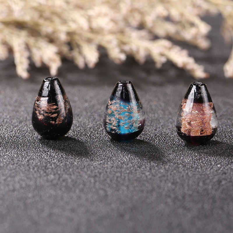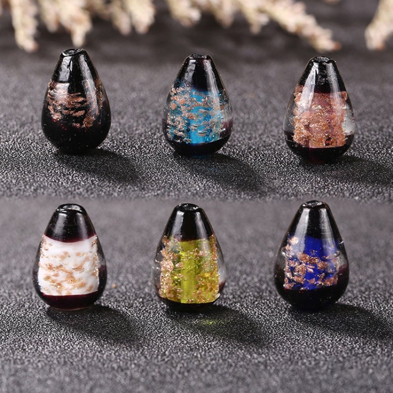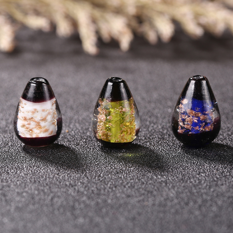 japanese style full gold sand water drop glass beads diy bracelet hairpin sweater chain jewelry ornament accessories wholesale 中文版