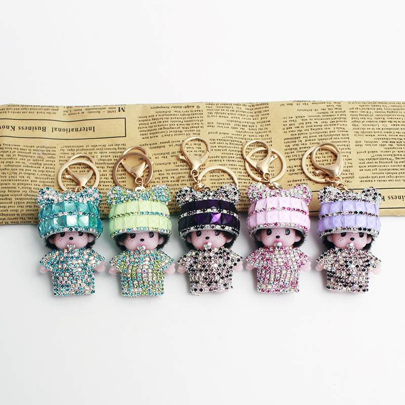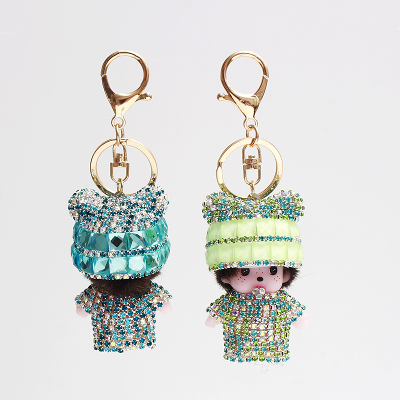 About Product:2019 new fashion diamond mengqiqi key ring small ear cap cute doll activity small gift pendant