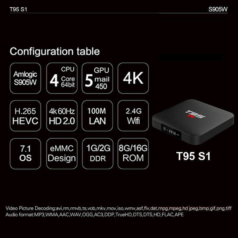 S905W quad-core cortex-A53 frequency: 2.0GHz |