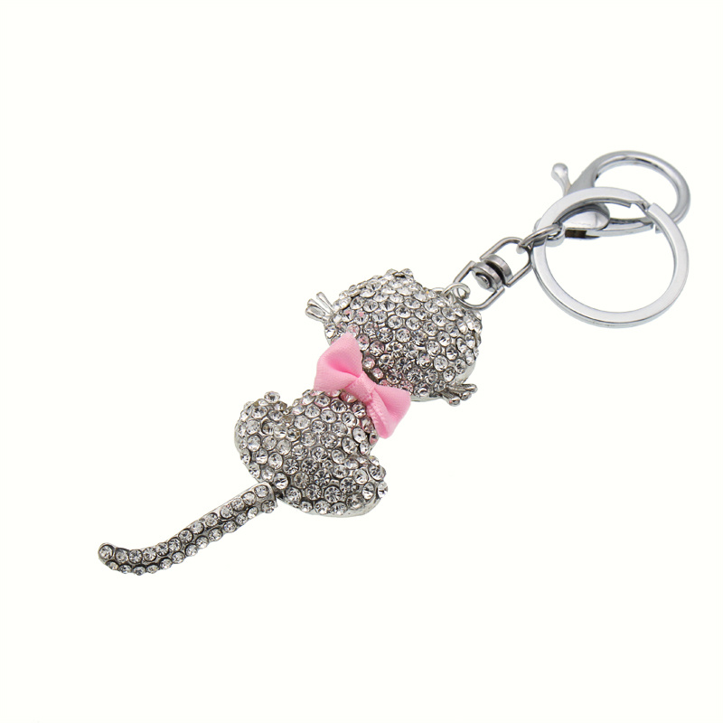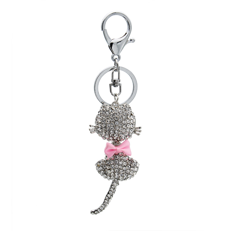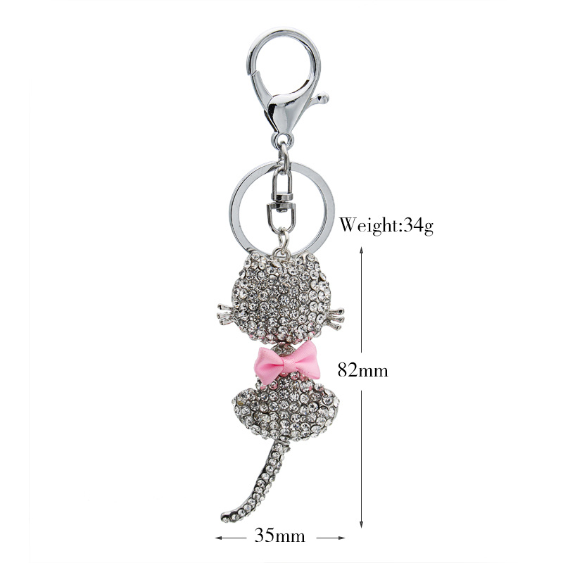 About Product:New fashion personality metal bag accessories elegant little cat diamond key chain alloy animal sweater chain