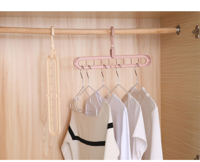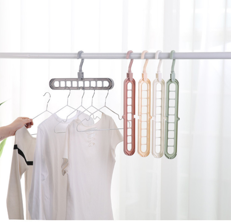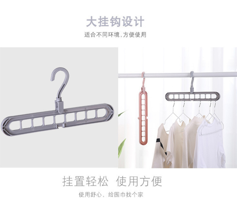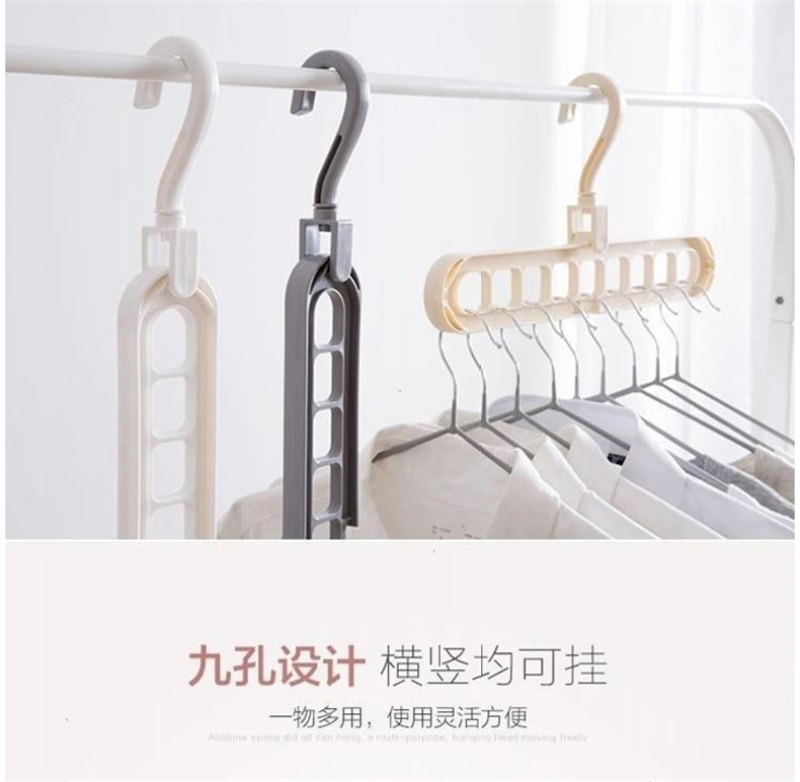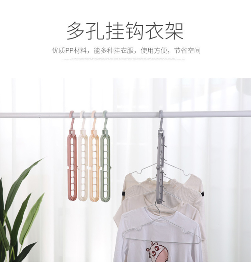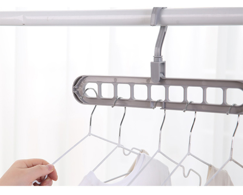 Robust PP material, convenient nine-hole branching, hanging head can rotate 360 degrees freely, can be used horizontally or vertically, lightweight and convenient storage and drying, protecting the home from messy clothes. |