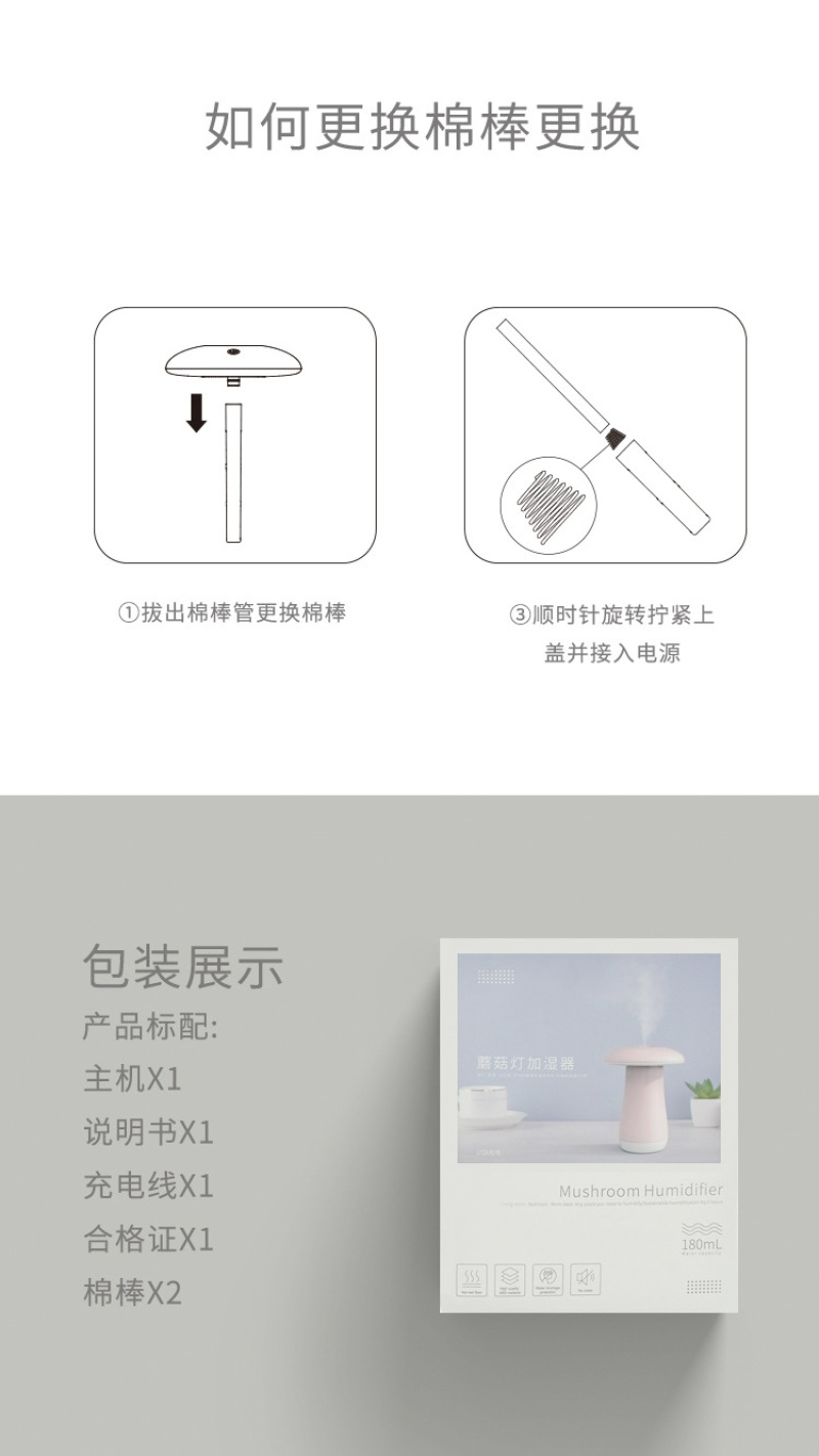 New mushroom lamp humidifier mini office home air humidifier USB car humidifier 中文版
