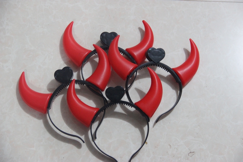 【Instructions】Red horned headband with button battery already installed. Inside the center heart-shaped device, remove the power block to turn on the switch and it will light up. The wide-rimmed headband has smooth little teeth on the top for better grip and comfort.