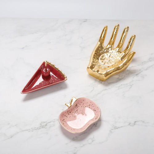 Nordic simple ceramic jewelry plate girl room makeup table painted gold pizza creative decoration decoration