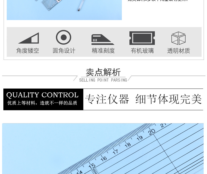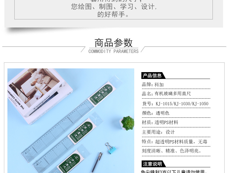 kejia organic glass ruler professional ruler cm scale ruler set ruler 中文版