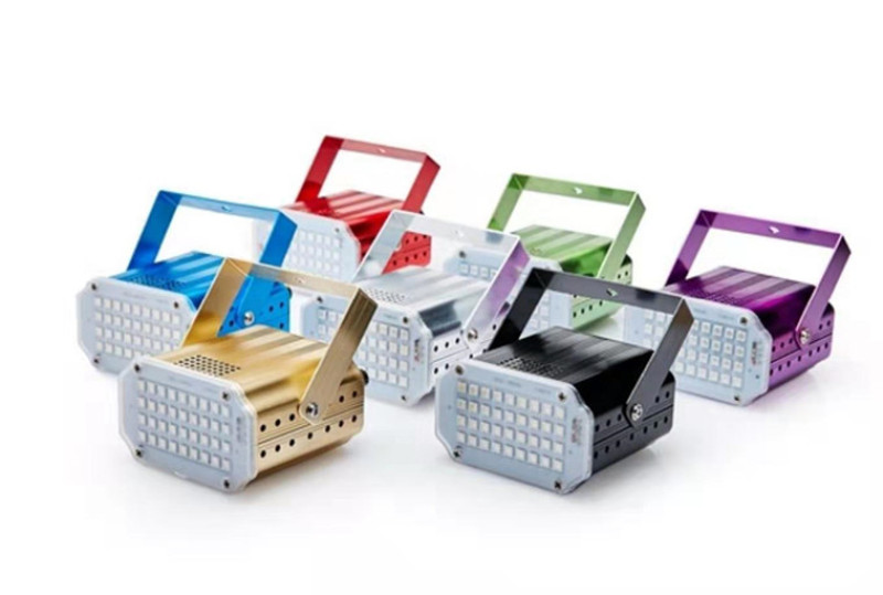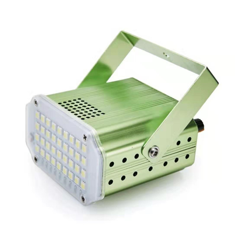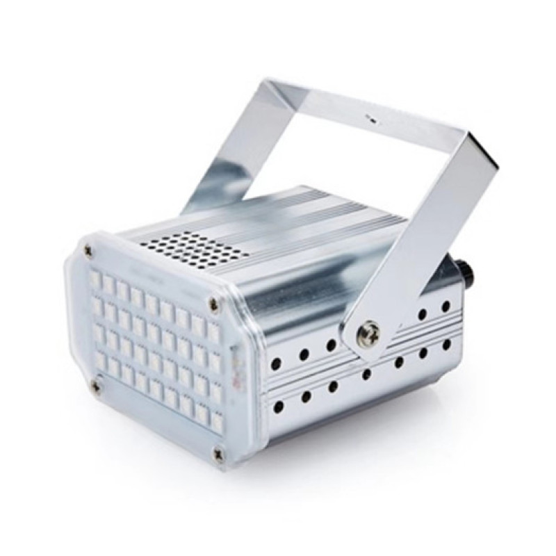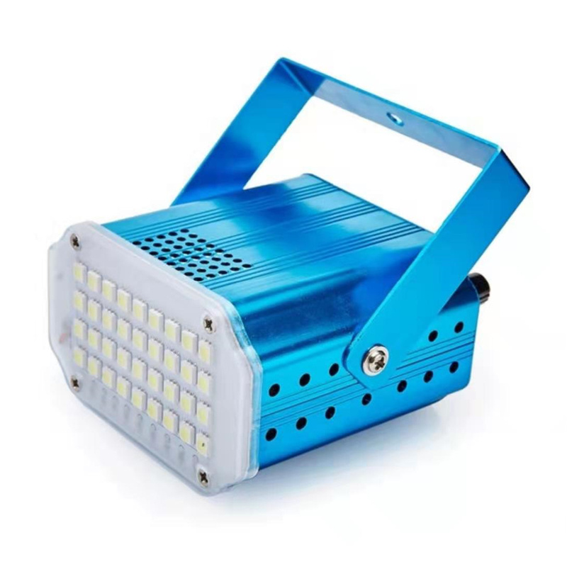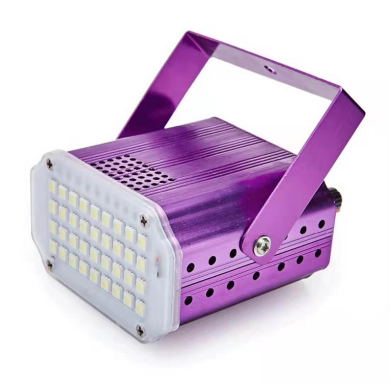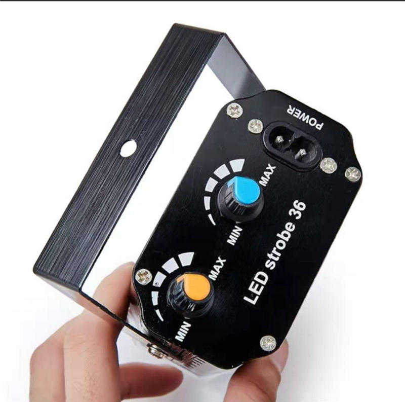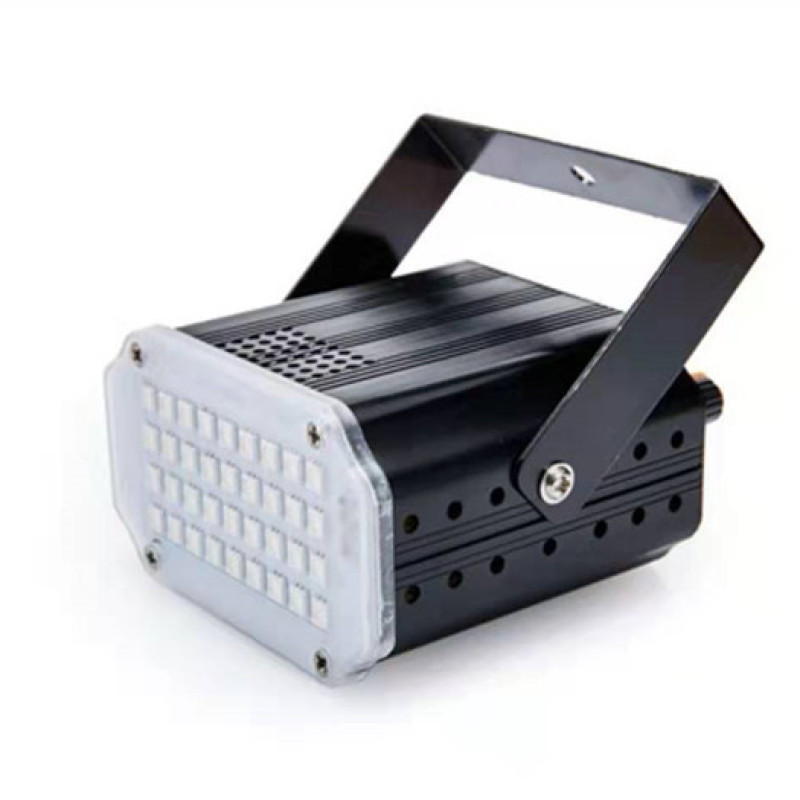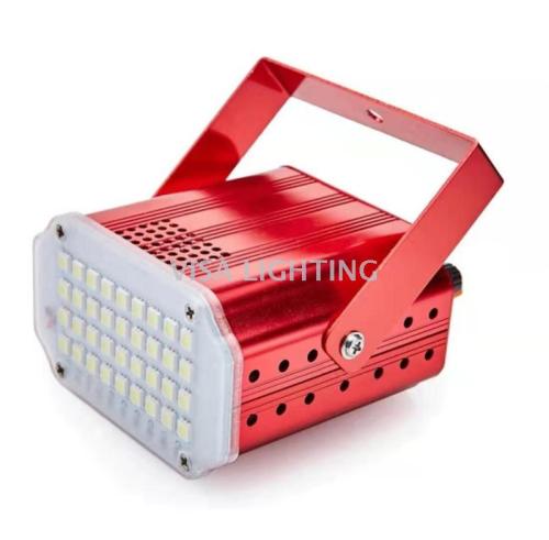 About Product:Product parameters:\nProduct name :LED 36 strobe\nLight source :36 LED 5050 white light /RGB beads\nThe voltage of 90-240 - v\nFunction mode voice control, self-walking, strobe (adjustable speed)\nAluminum alloy/plastic ABS\nAppearance color: black, silver, red, green, blue, rich gold, purple optional