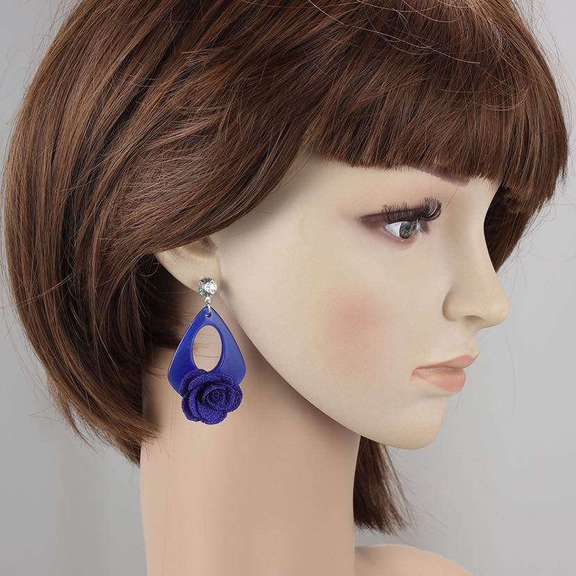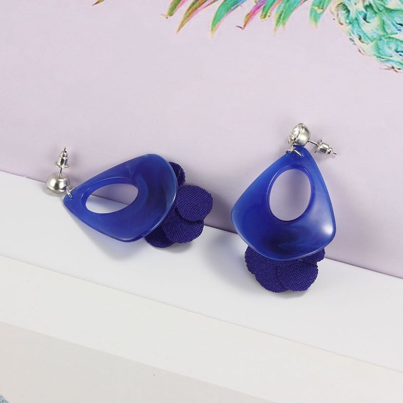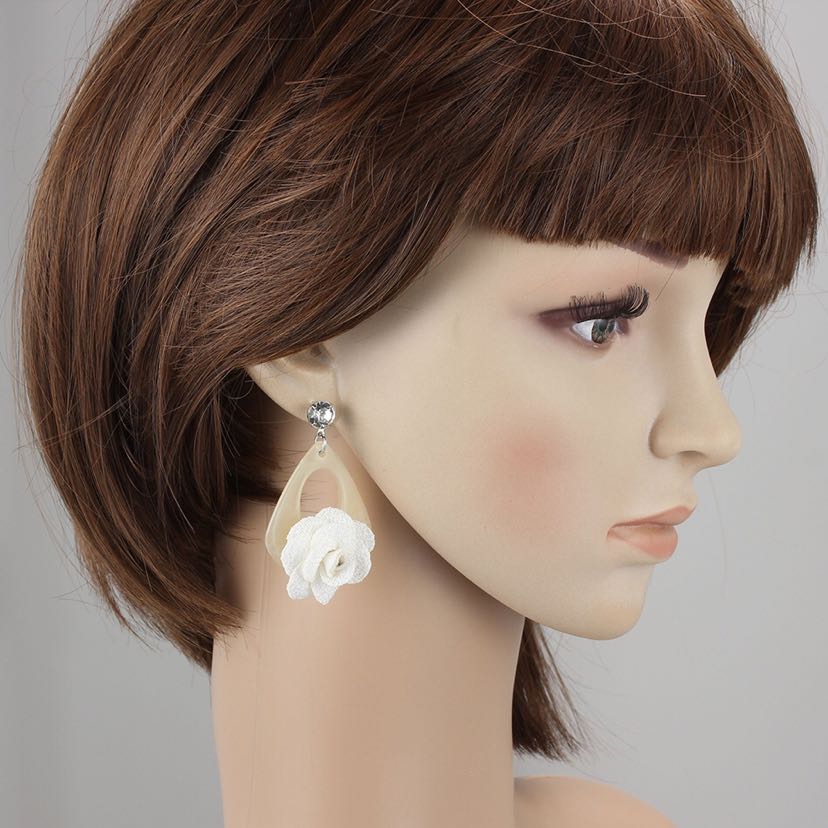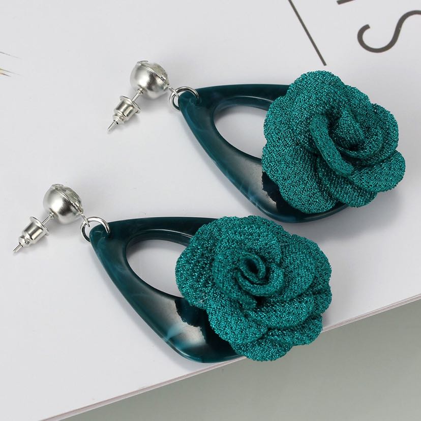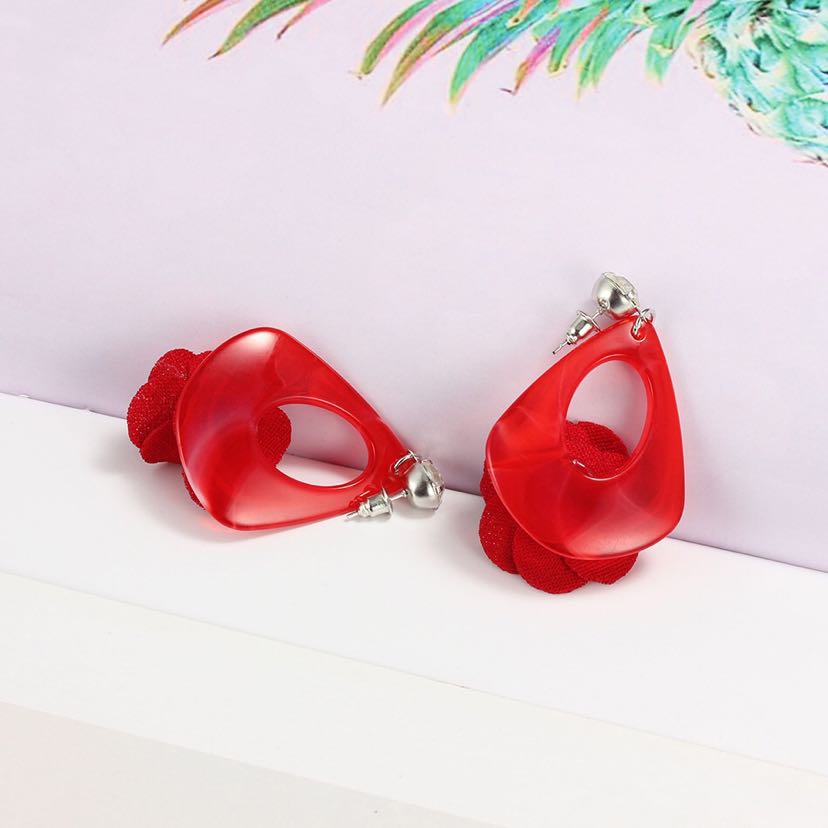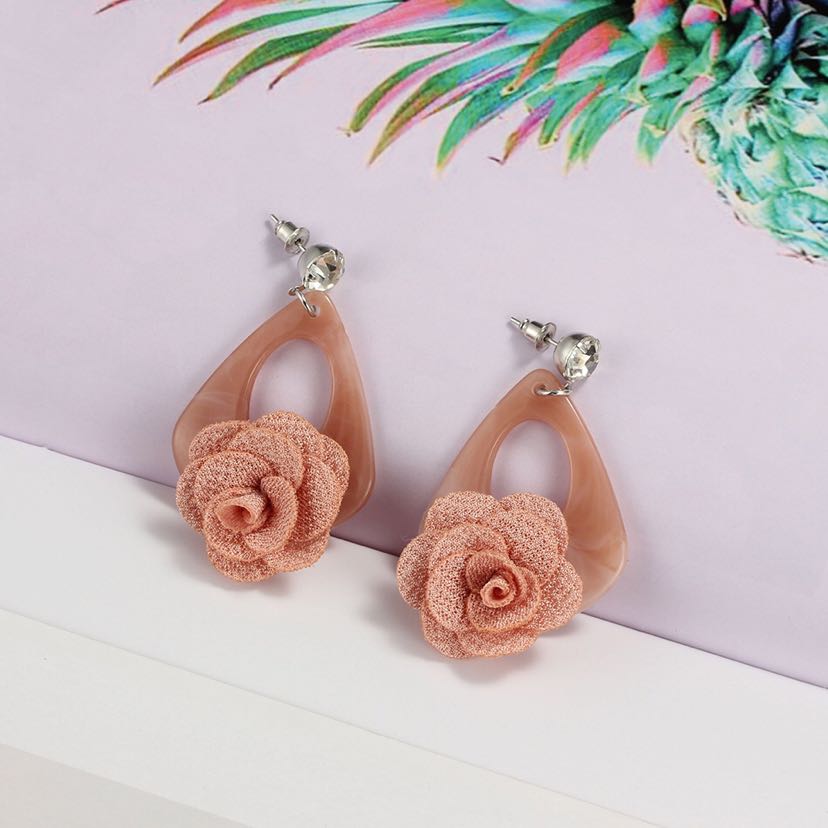 Anti-Allergy Rhinestone Acrylic Fabric Flower Decoration Cute Creative Baita Earrings Ear Studs Earrings 中文版