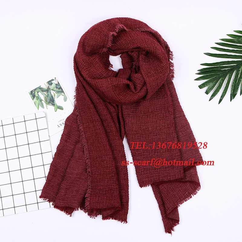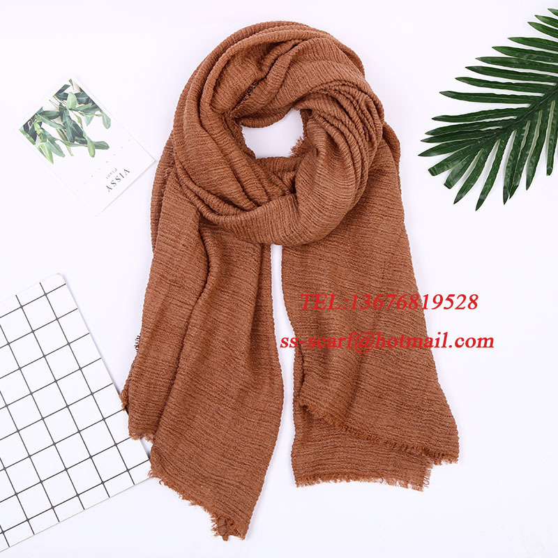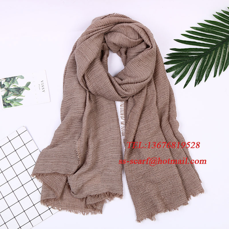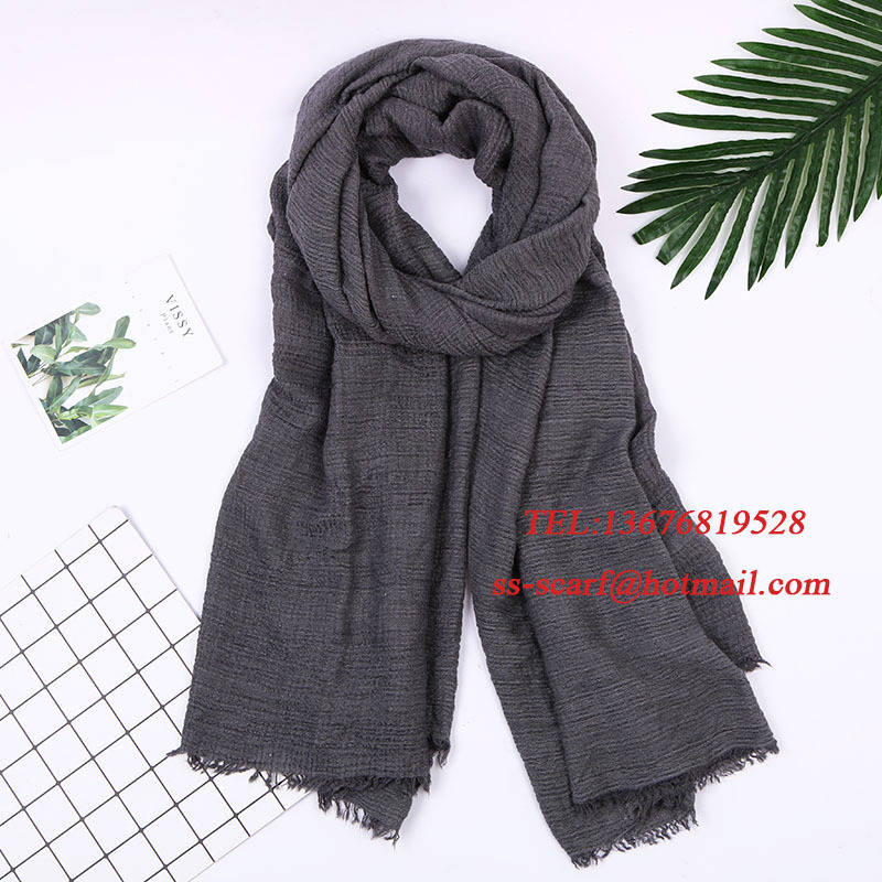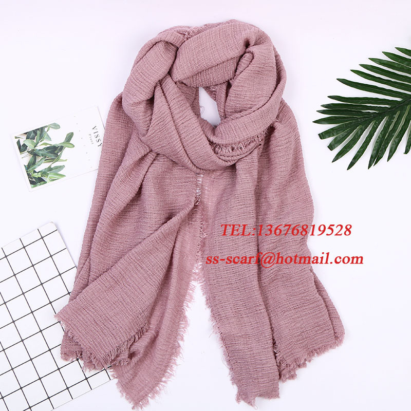 Monochrome cotton and linen scarves, crinkled scarves, versatile solid color silk scarves, winter style headbands with hairy shoulders, European and American fashion.