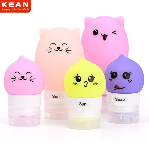 Silicone bottle with a storage capacity of 37ml/89ml (3floz) hidden in your bag, suitable for carrying on board. Food-grade silicone, triple leak-proof, and free from BPA. It has passed FDA and European CE certifications. This reusable silicone bottle with a cute mini shape is available in four expressions.
