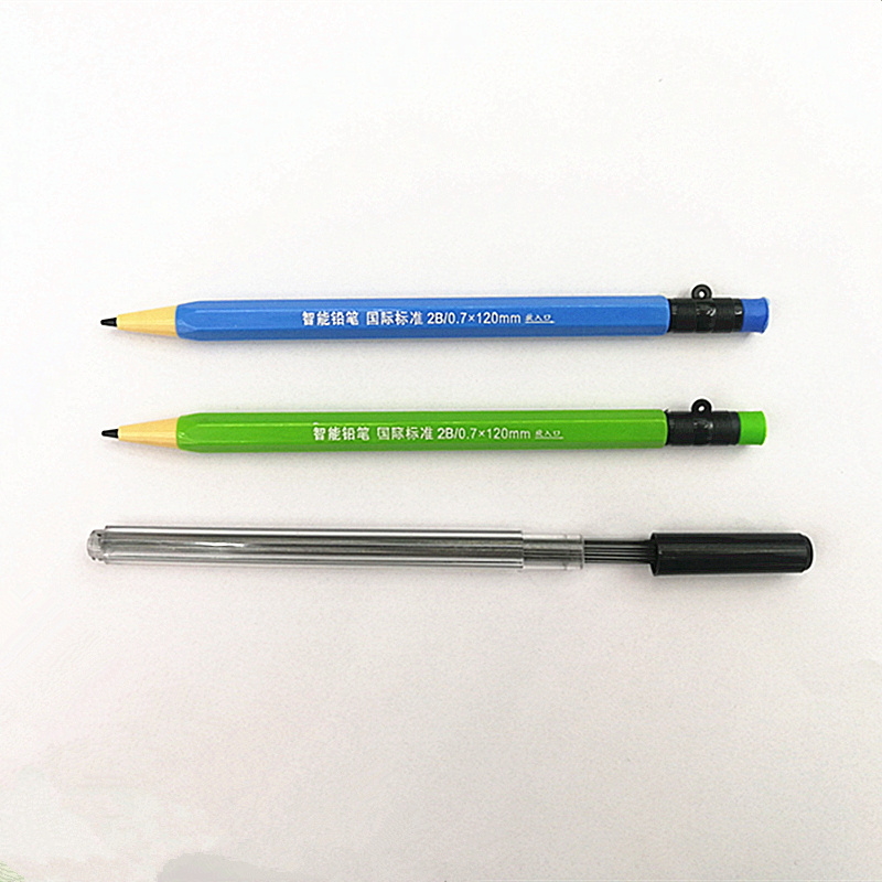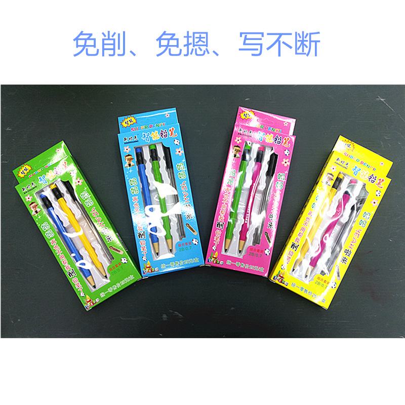 蓝、绿、粉、黄四色文具包装,每套两支笔带一支芯(0.7)