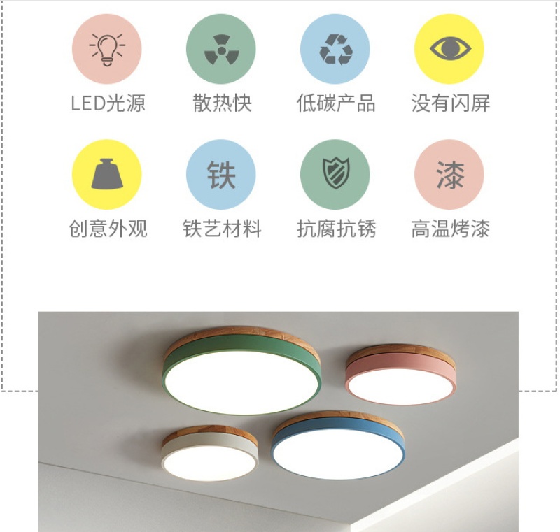 macaron wooden led lamp nordic style creative living room bedroom and household round ceiling fashion personalized lamps 中文版