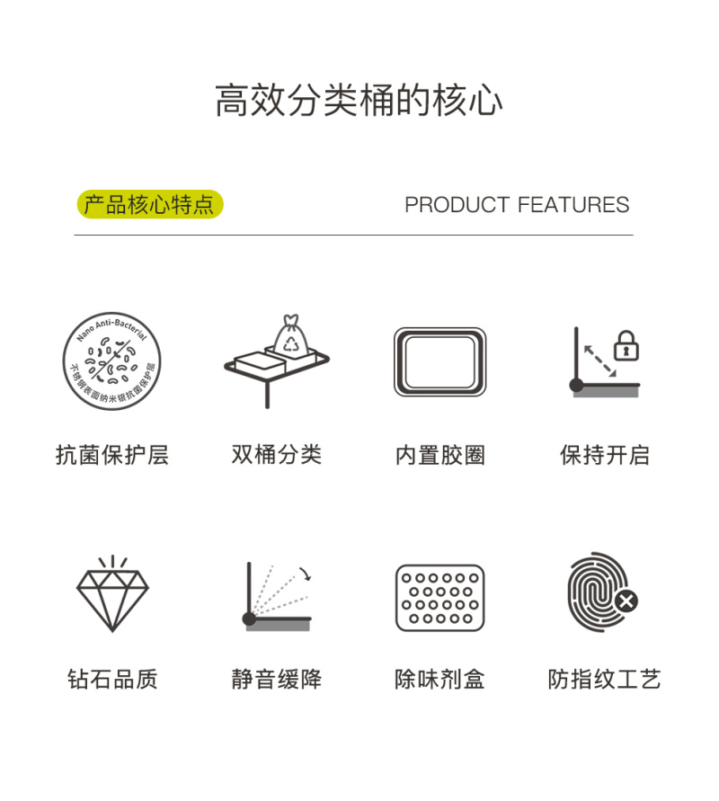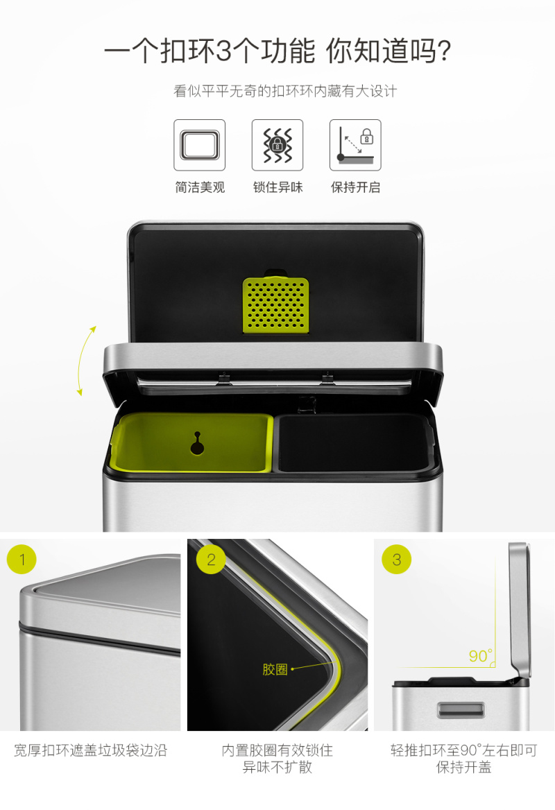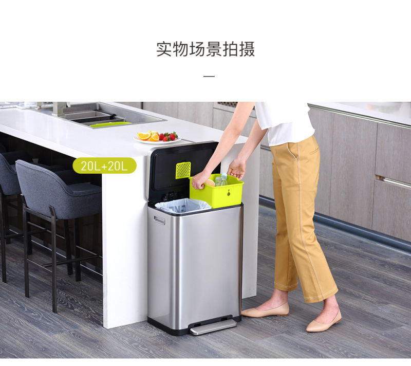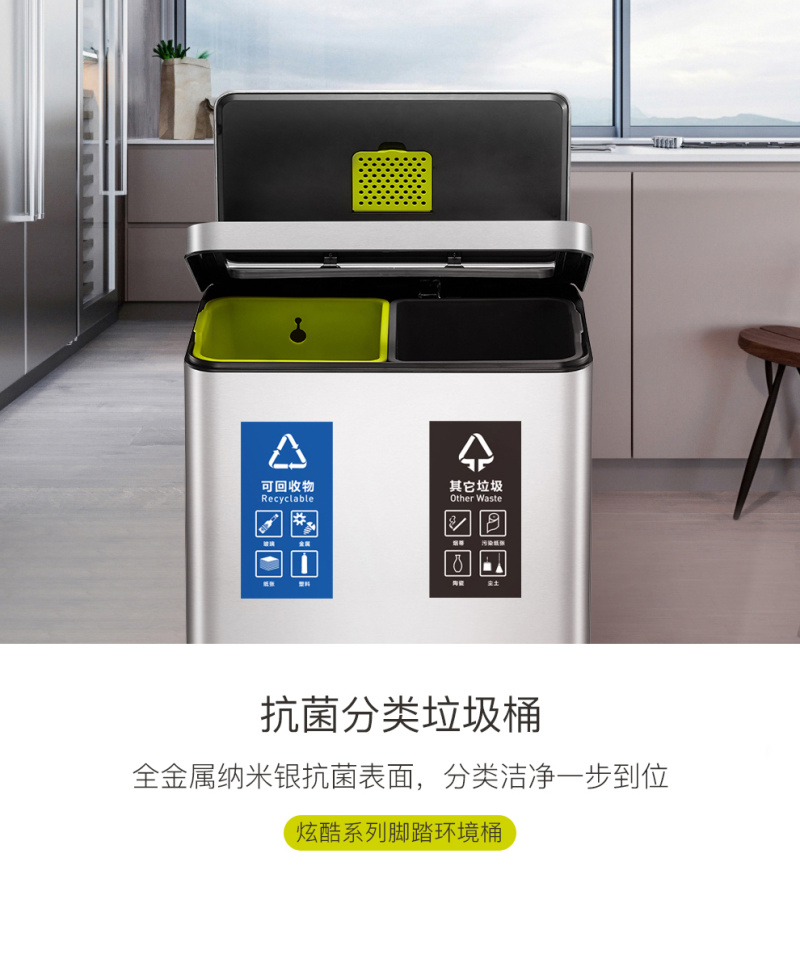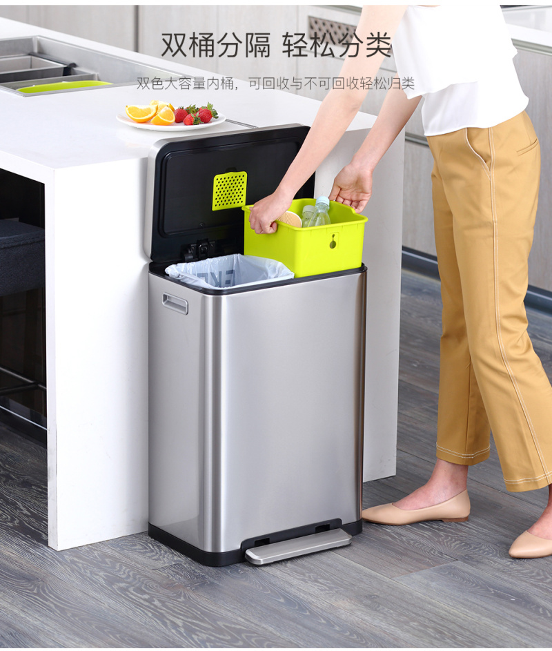 EKO trample on lid trash can kitchen living room household large garbage dry and wet sorting trash can 中文版