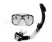 This is a 2-piece set of a snorkel mask and breathing tube. The snorkel mask set includes a breathing tube with reinforced lenses for both sides. It's a great set for snorkeling equipment.