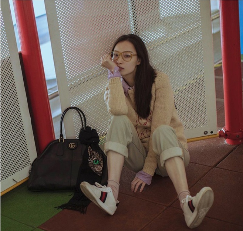 Ni ni is worn with transparent frame of fashionable sunglasses restoring ancient ways myopia